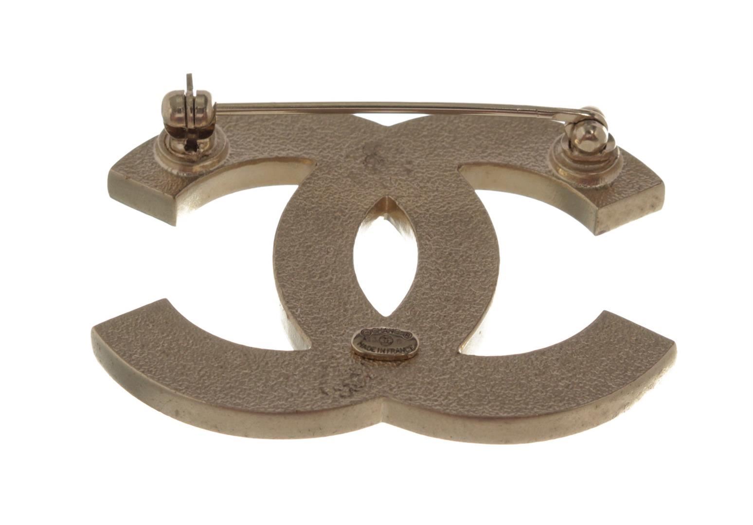 One Chanel Pink White Striped CC Enamel Brooch. Item is sold AS-IS. All available information is listed in the description and shown in the photo. Pink and white stripe Chanel CC enamel brooch features CC logo and gold-tone hardware.
