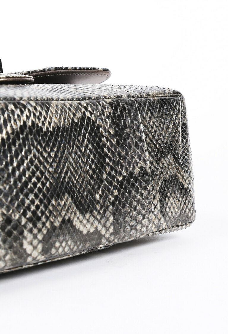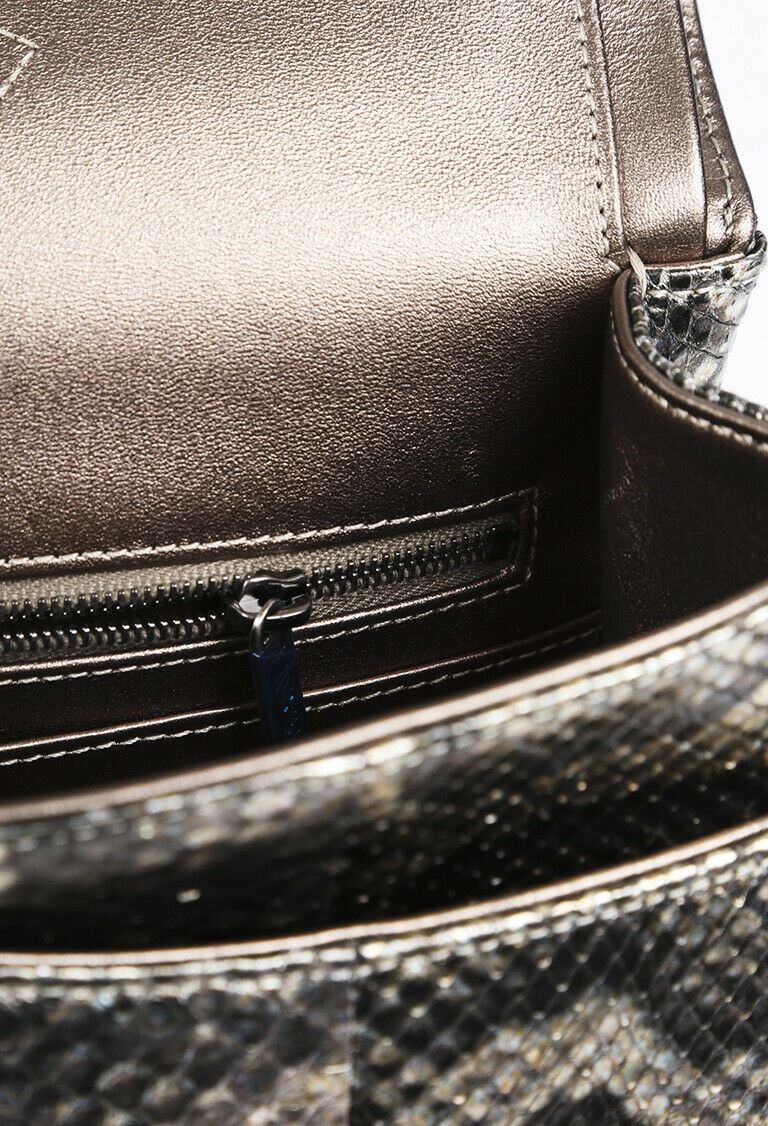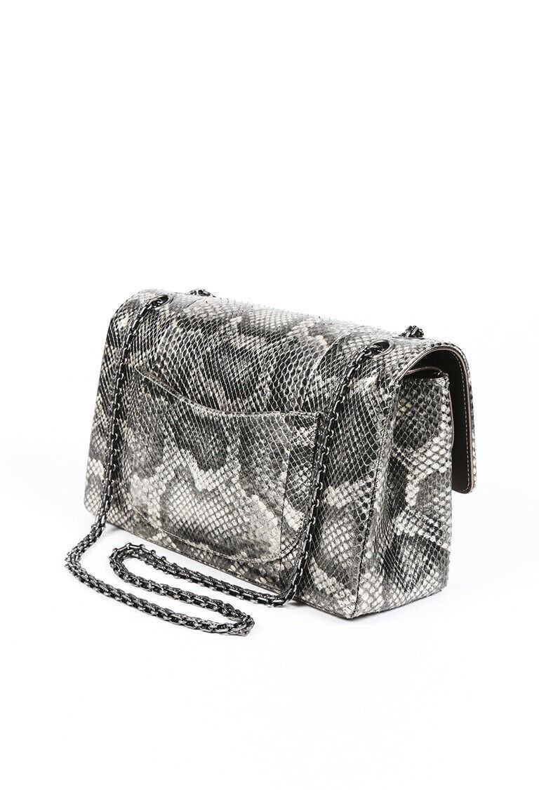Description : Chanel 2.55 Reissue 226 Python Shoulder Bag. Circa 2015. Created by Coco Chanel in 1955, the 2.55 Reissue is given a luxe update. This stunning 2.55 Reissue is crafted from metallic python snakeskin and features antiqued silver tone hardware, an adjustable chain strap, back slip pocket, front flap with a Mademoiselle turn lock closure, and a leather interior with pockets.