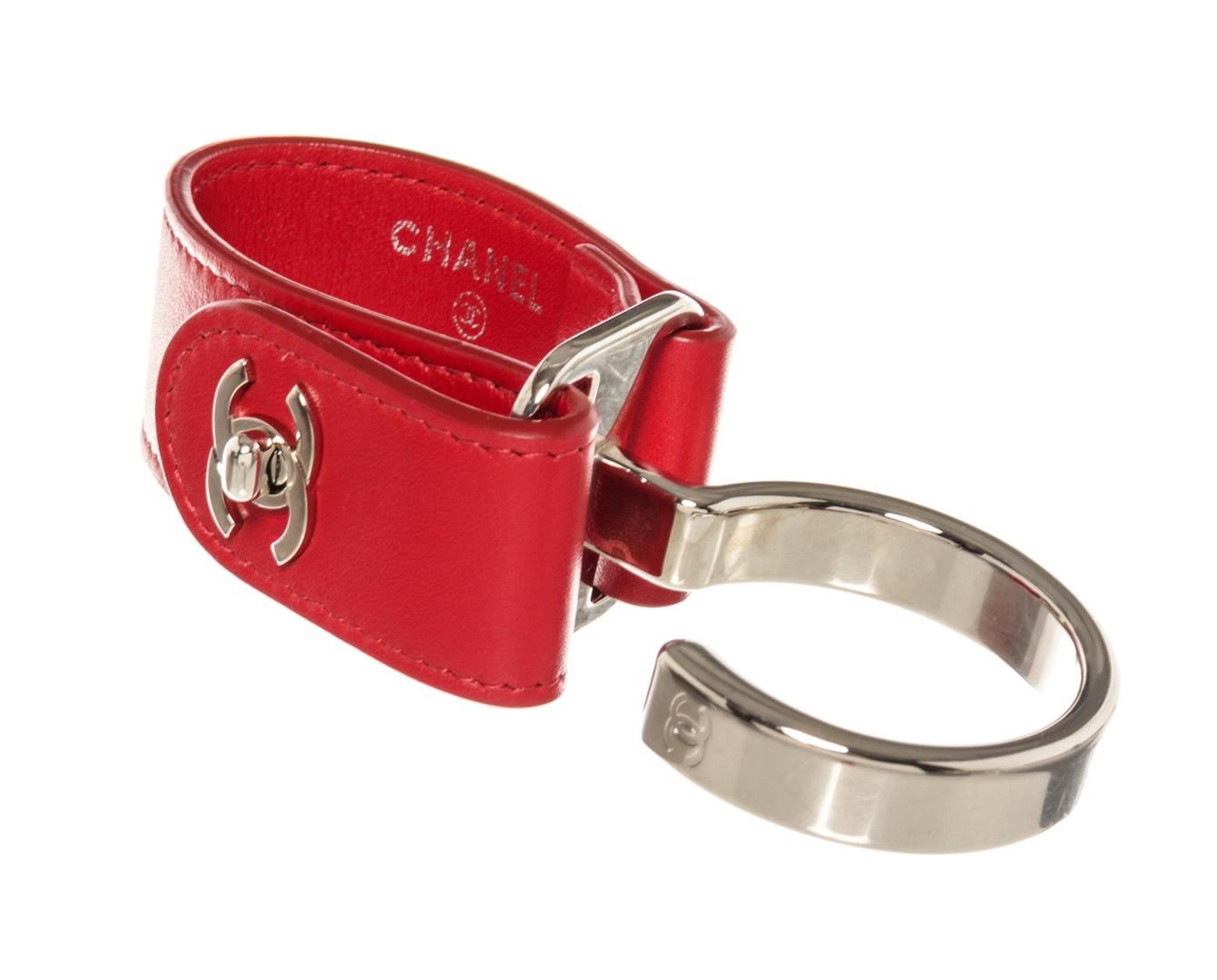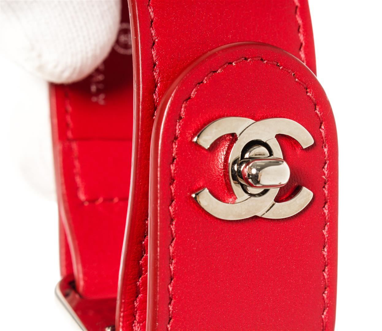 One Chanel Red CC Turnlock Luggage. Item is sold AS-IS. All available information is listed in the description and shown in the photo. Red Chanel CC Turnlock Luggage. This luggage tag is detailed with a silver-tone hook and finished with the Maison's signature interlocking CC turn-lock fastening.