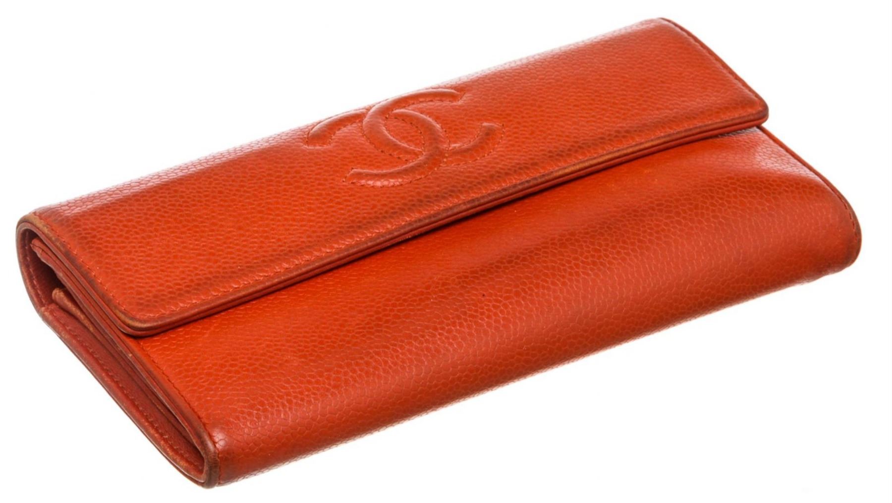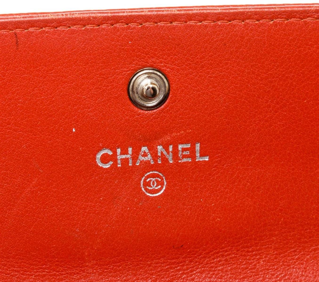 One Chanel Red Caviar Leather CC Long Flap Wallet. Red caviar leather Chanel CC long flap wallet with tonal leather lining, twelve credit card slots, three compartments one with zipper closure, one bill pocket and overall flap with button snap closure. MKX