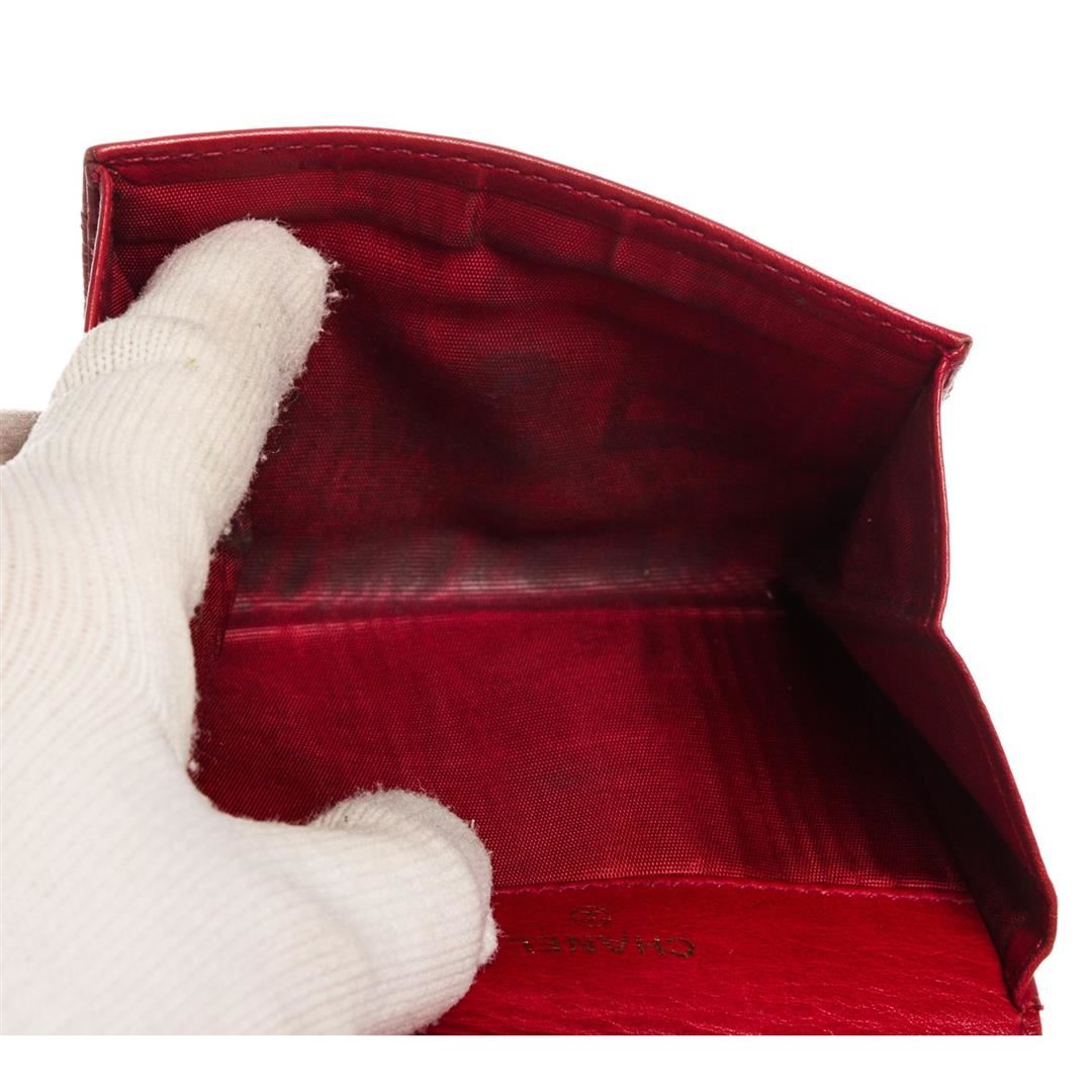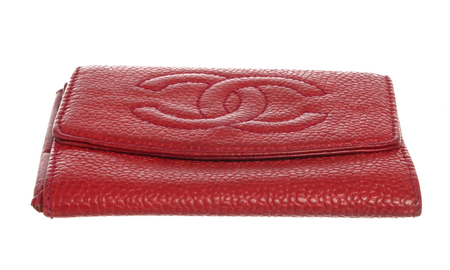 Overall CC fold-over flap snap closure. Interior is red canvas lined and contains one credit card slip pocket. Please note the inner lining has coin stains, please look at pictures. Authentic.