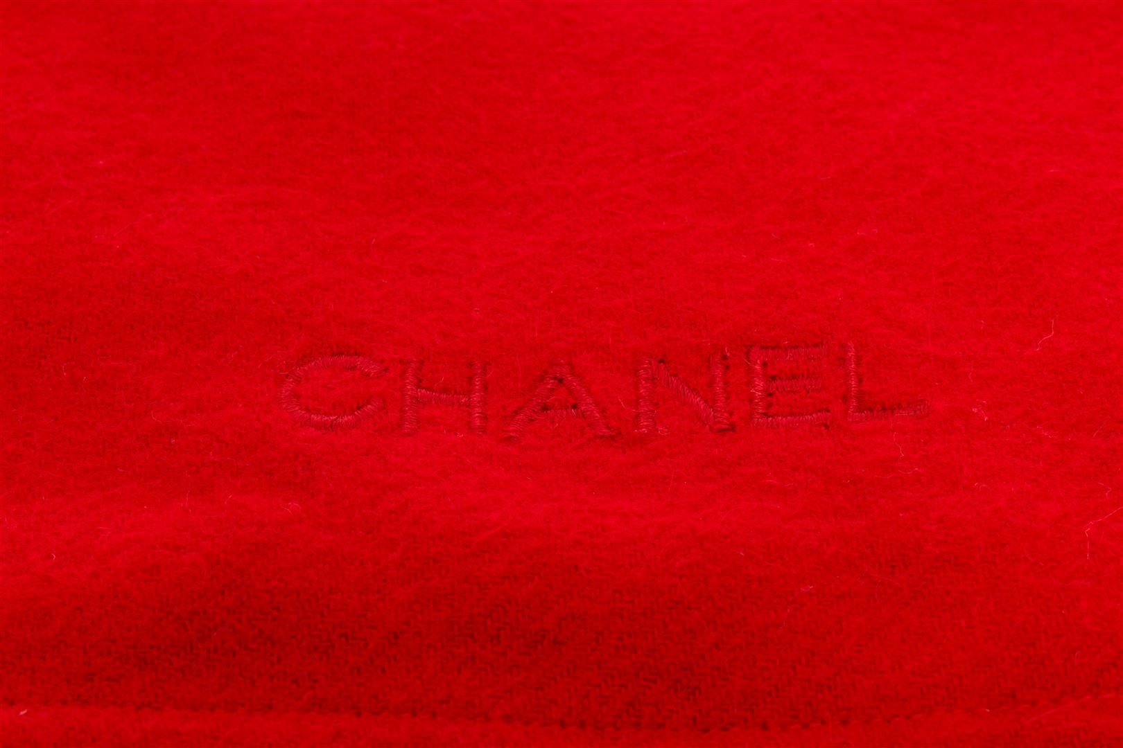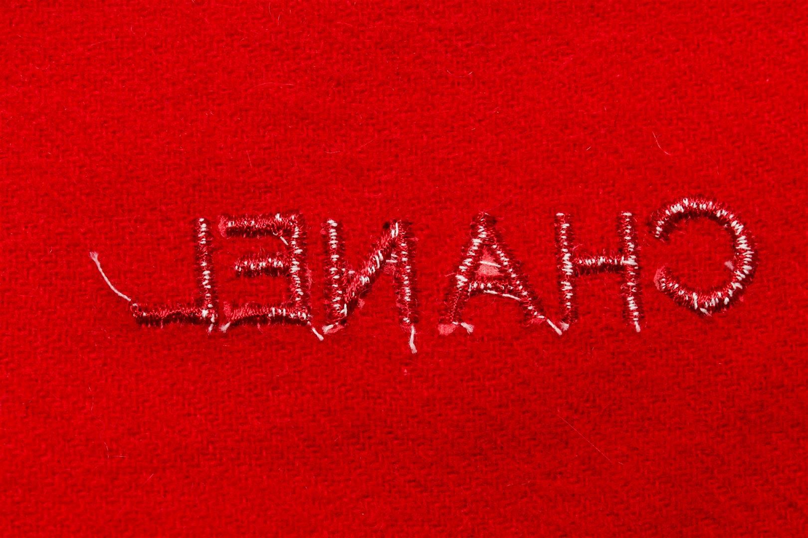 One Chanel Red Italian Flag Shawl. Item is sold AS-IS. All available information is listed in the description and shown in the photo. Chanel Red Italian Flag Shawl