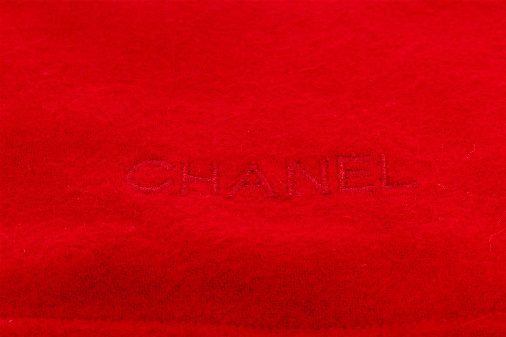 One Chanel Red Italian Flag Shawl. Item is sold AS-IS. All available information is listed in the description and shown in the photo. Chanel Red Italian Flag Shawl