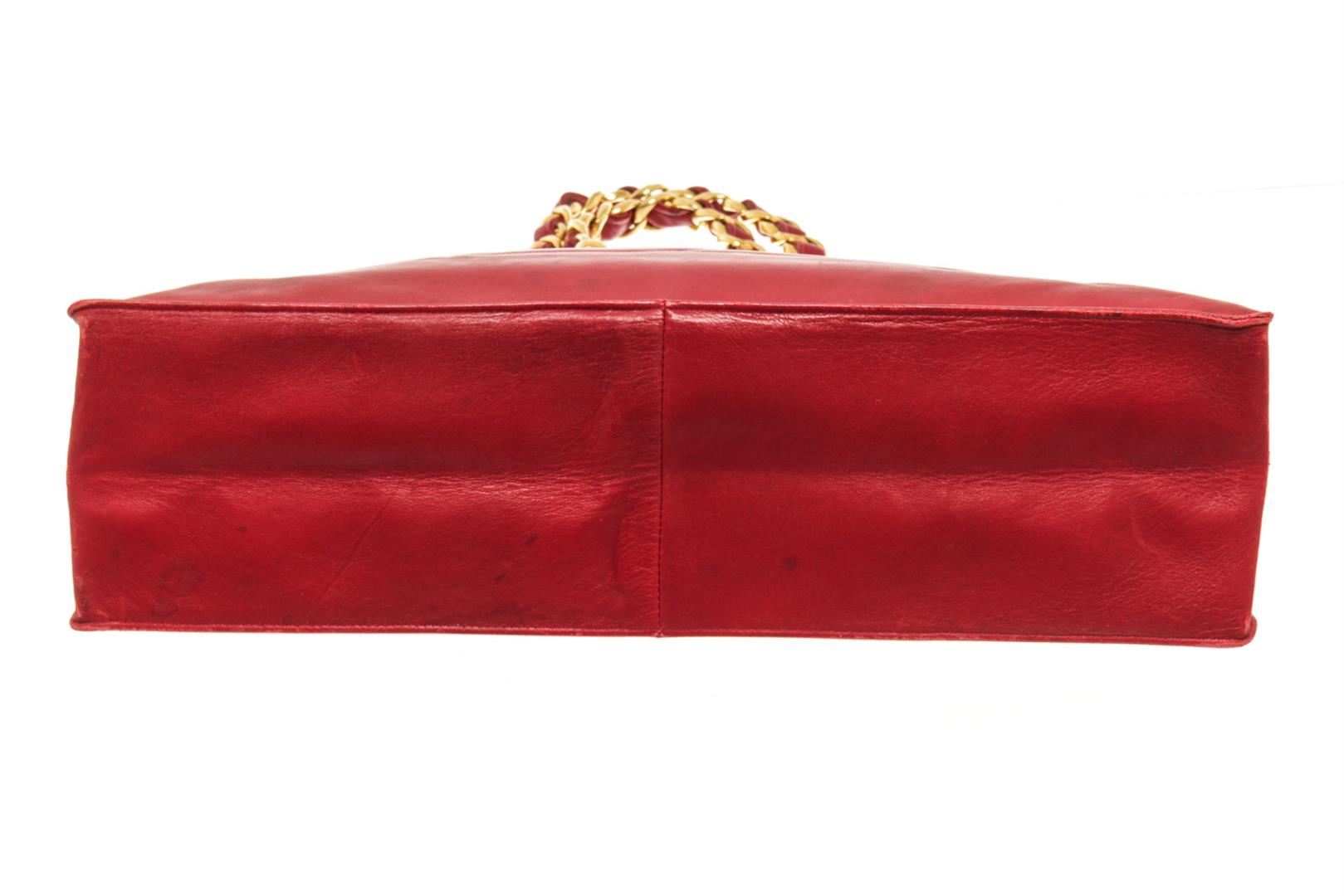 One Chanel Red Lambskin Chain Shoulder Bag. Item is sold AS-IS. All available information is listed in the description and shown in the photo. Chanel Red Lambskin Chain Shoulder Bag with gold-tone hardware, two leather and chain-link shoulder strap, open top, main compartment internal zip-fastening pocket, internal logo stamp. Depth 4.3 in, Height 12.2 in, Strap 12.2 in, Width 16.3 in / Depth 11 cm, Height 31 cm, Strap 31 cm, Width 41.5 cm
