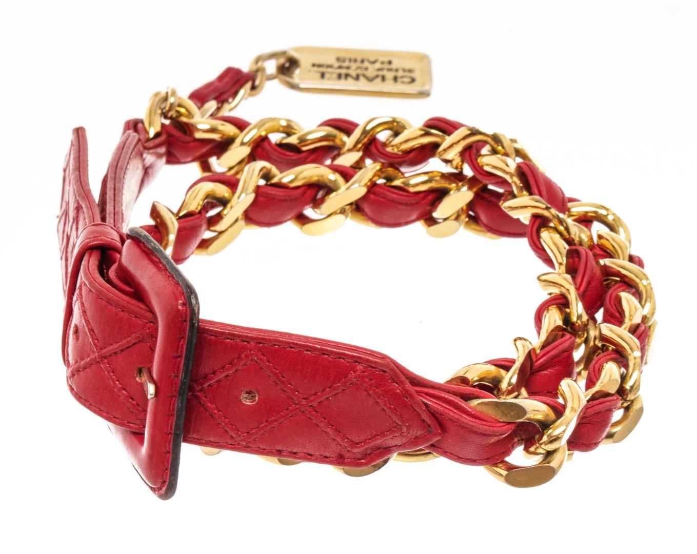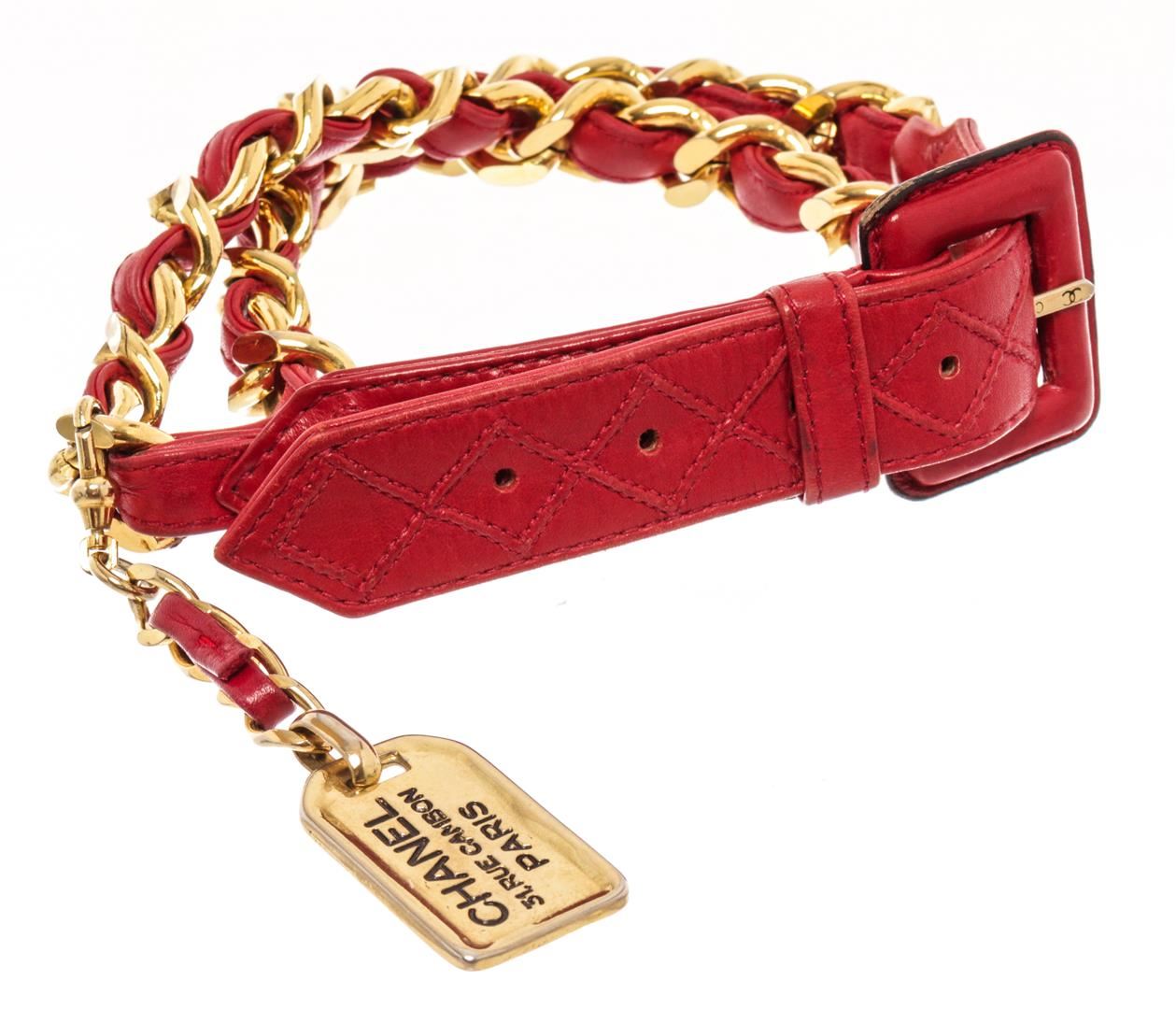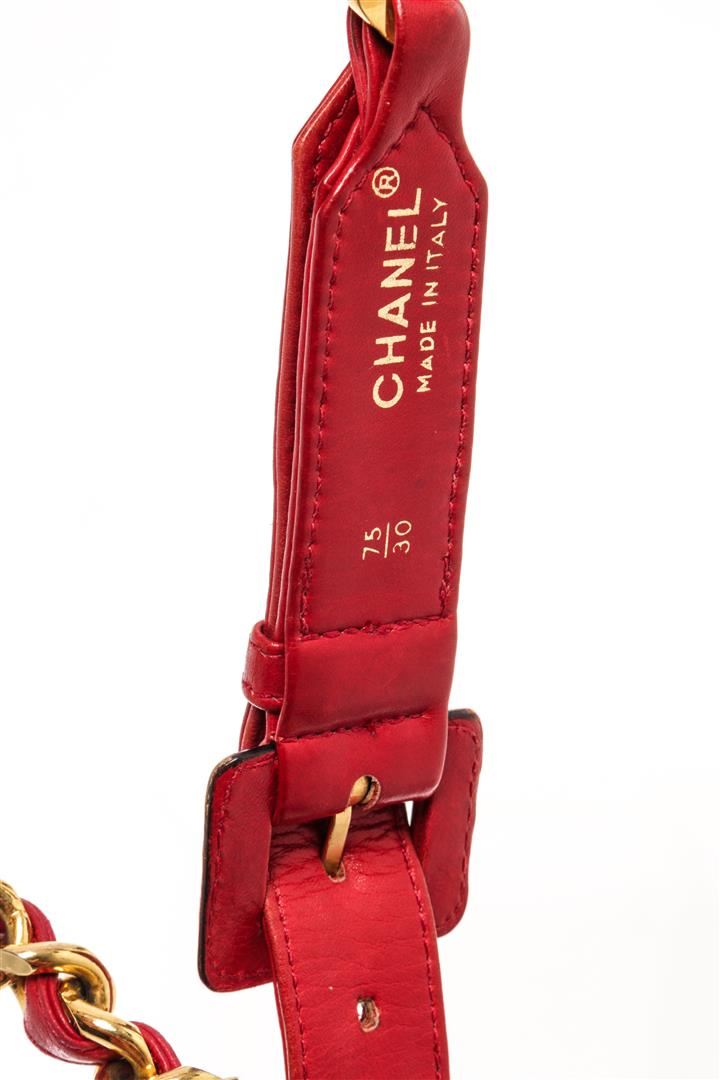 Chanel Red Lambskin Leather Micro Mini Pochette Waist Belt. All available information is listed in the description and shown in the photos. CHANEL Red Lambskin Leather Micro Mini Pochette Waist Belt with gold tone hardware, lambskin leather, leather lining. length: 38" / 96.52 cm