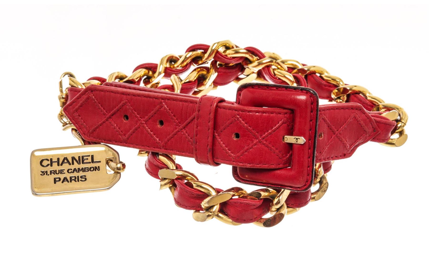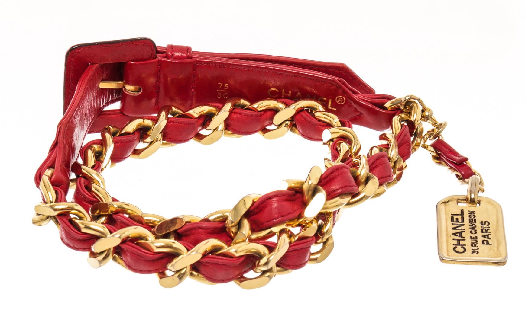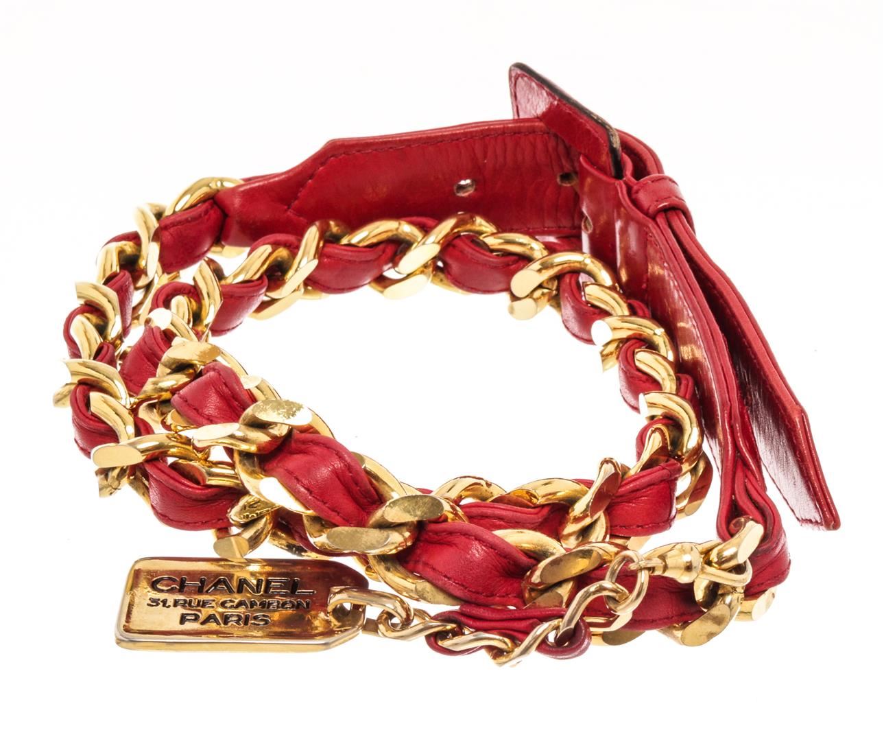 Chanel Red Lambskin Leather Micro Mini Pochette Waist Belt. All available information is listed in the description and shown in the photos. CHANEL Red Lambskin Leather Micro Mini Pochette Waist Belt with gold tone hardware, lambskin leather, leather lining. length: 38" / 96.52 cm