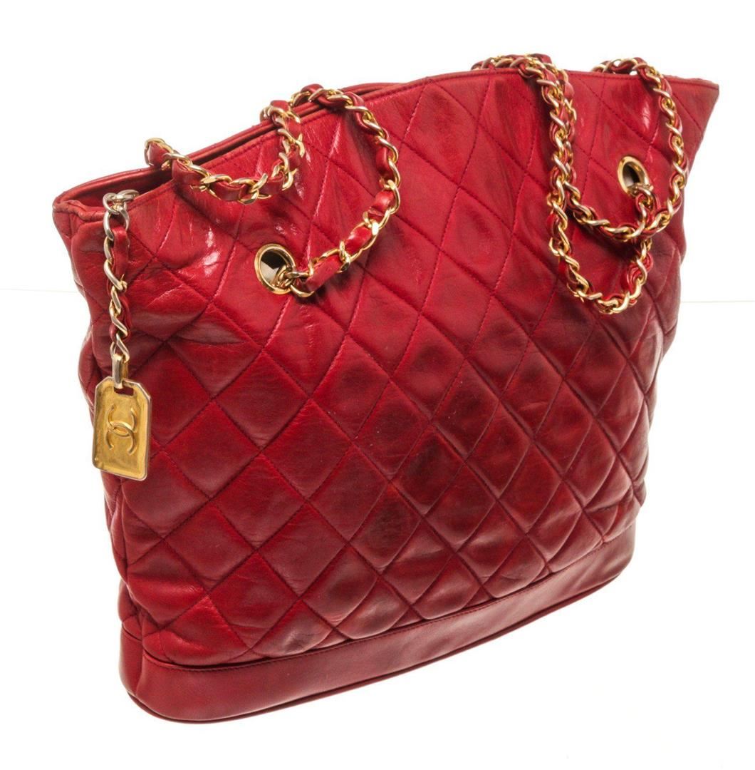 Chanel Red Leather Quilted Chain Shoulder Bag. All available information is listed in the description and shown in the photos. Chanel Red Leather Quilted Chain Shoulder Bag with material leather, gold-tone hardware, interior zip pockets, chain shoulder strap and zipper closure.