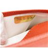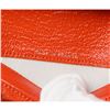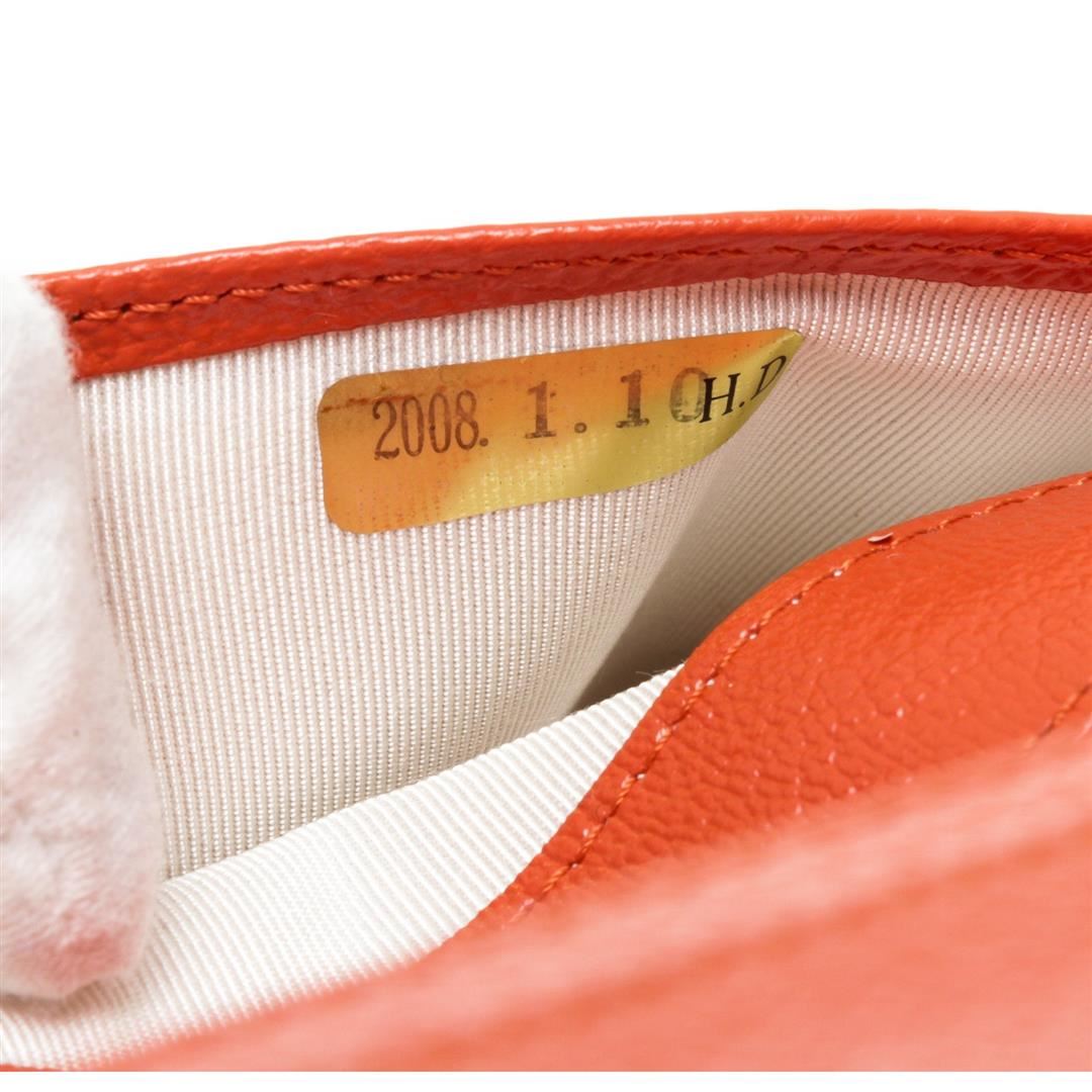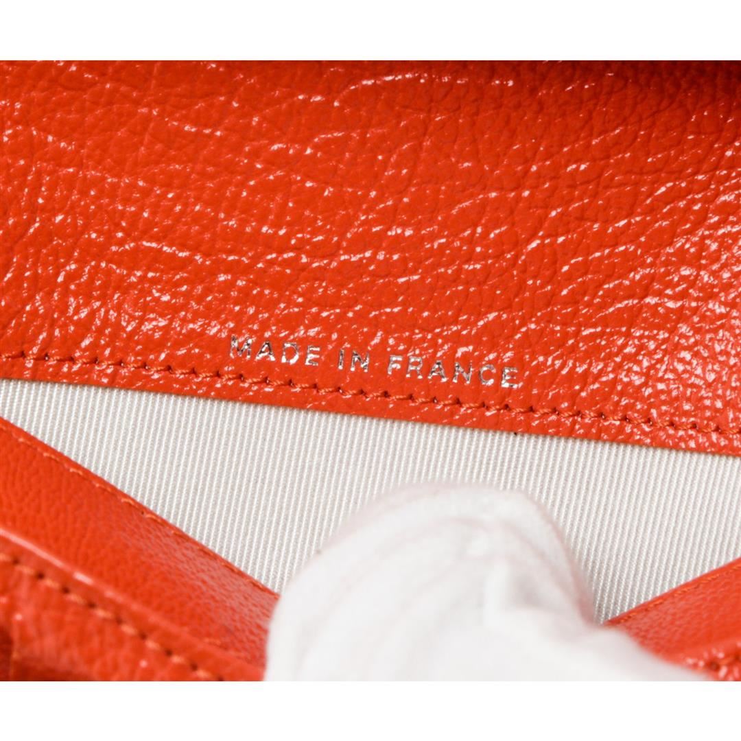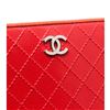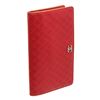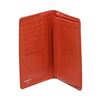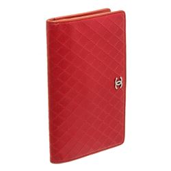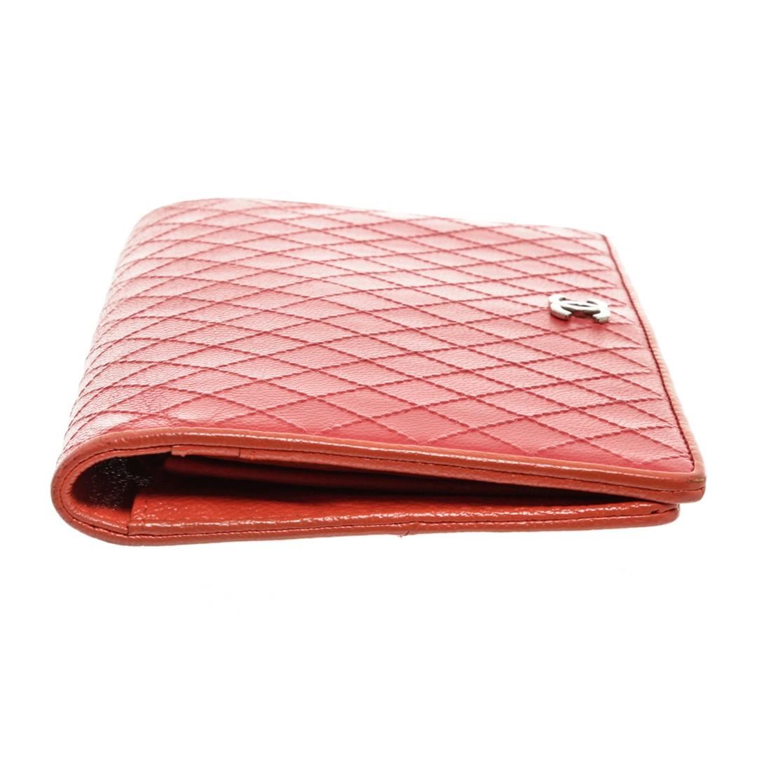 Red orange leather Chanel stitched bifold long wallet with eight credit card pockets, five bill compartments and one zipper pocket. Authentic.