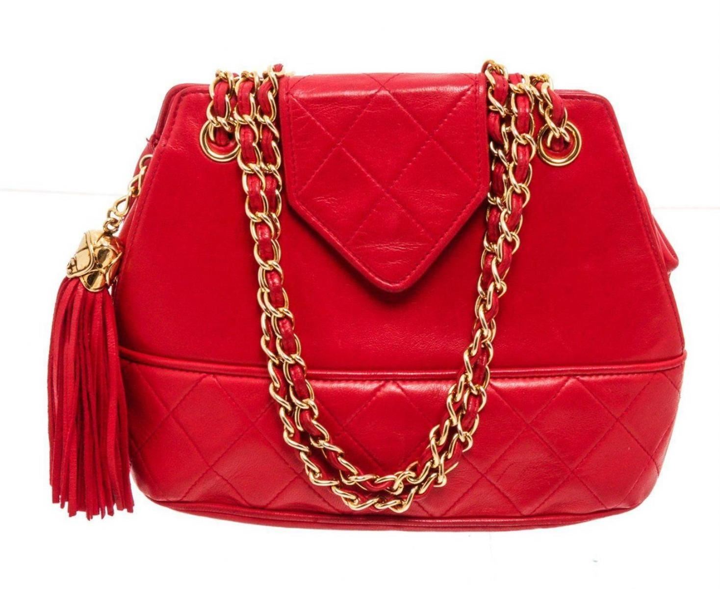 Chanel Red Leather Vintage Tassel Crossbody Bag. Chanel Red Leather Vintage Tassel Crossbody Bag with material leather, gold-tone hardware, interior zip pockets, chain shoulder strap and flap closure.