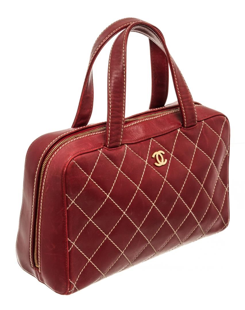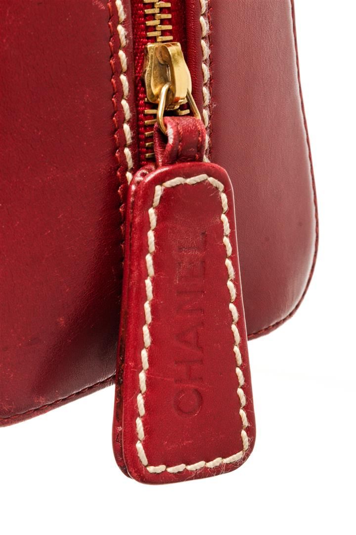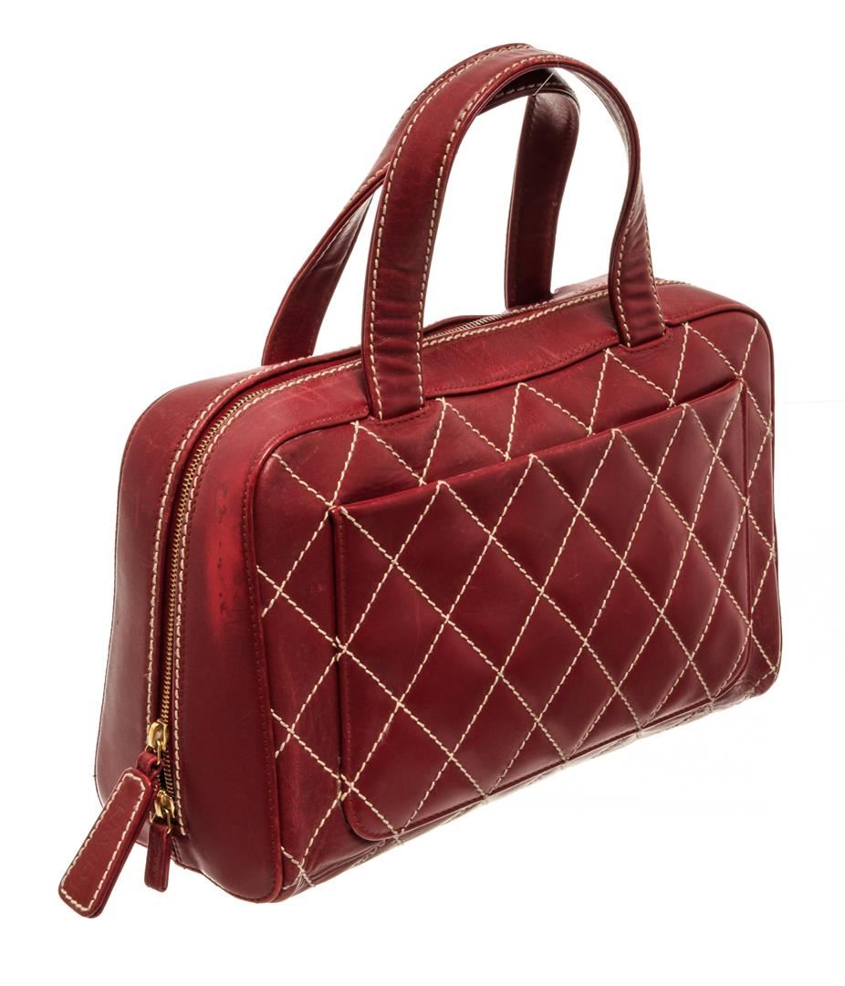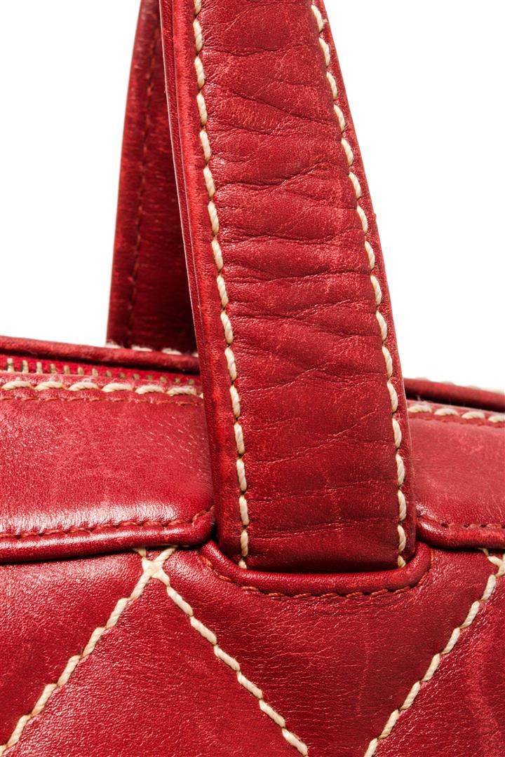 One Chanel Red Wild Stitch Tote Bag. Item is sold AS-IS. All available information is listed in the description and shown in the photo. Chanel red wild stitch tote bag with red leather exterior, contrasting white quilted stitching on the exterior, two top handles, gold-tone hardware, zip closure, red CC logo patterned fabric lining, and one interior zip pocket. There is some fading on the leather. Please refer to photos. Height: 9.45" Width: 4.73" Length: 13", Handle Drop: / 24 x 12 x 33 Cm