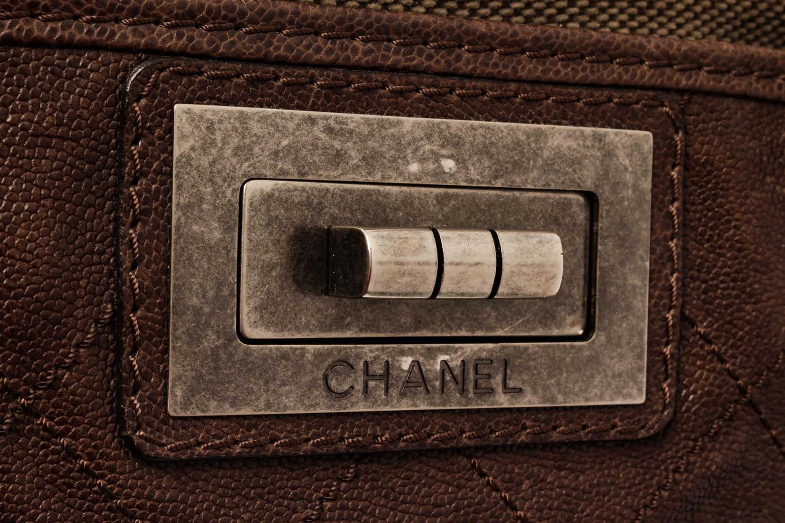 Chanel Reissue Shoulder Bag. Brand: Chanel, Style: Reissue, Type: Shoulder Bag, Exterior color: Brown, Exterior material: Caviar Leather, Interior color: Brown, Interior material: Canvas, Length: 18, Width: 5.25, Height: 9. Item is sold AS-IS and all info