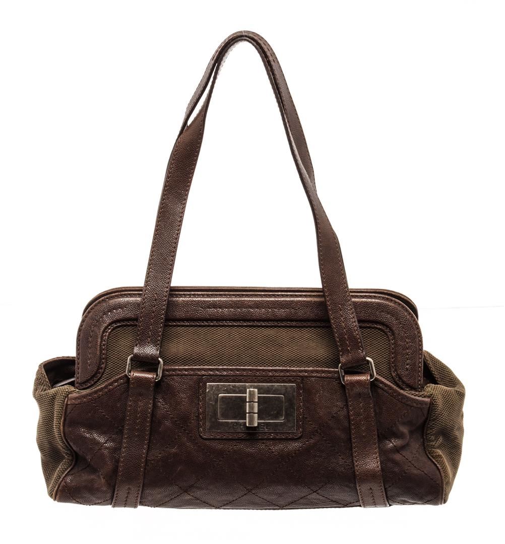 Chanel Reissue Shoulder Bag. Brand: Chanel, Style: Reissue, Type: Shoulder Bag, Exterior color: Brown, Exterior material: Caviar Leather, Interior color: Brown, Interior material: Canvas, Length: 18, Width: 5.25, Height: 9. Item is sold AS-IS and all info