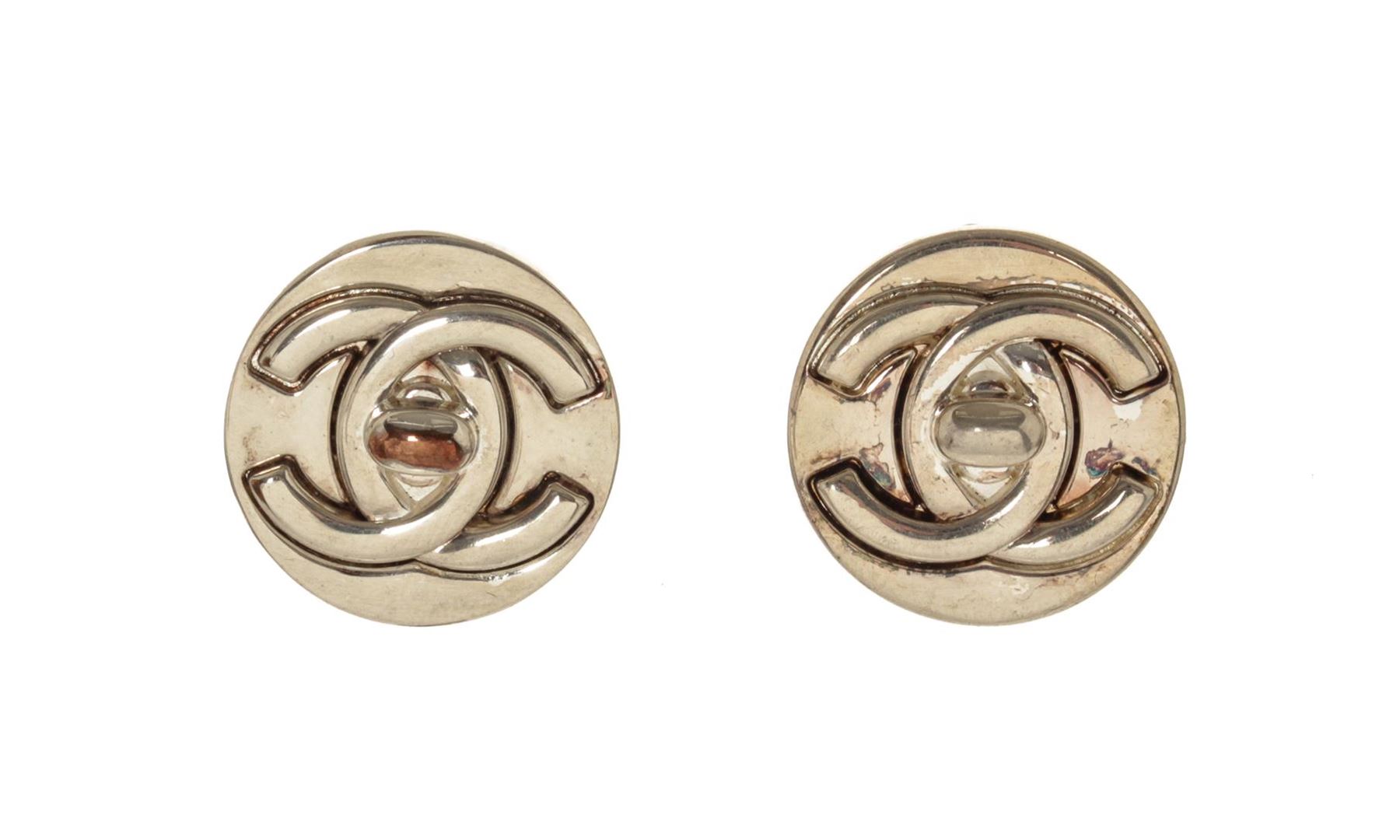 Chanel Round CC Logo Earrings. All available information is listed in the description and shown in the photos. Chanel Round CC Logo Earrings with silver tone metal hardware and made in France.