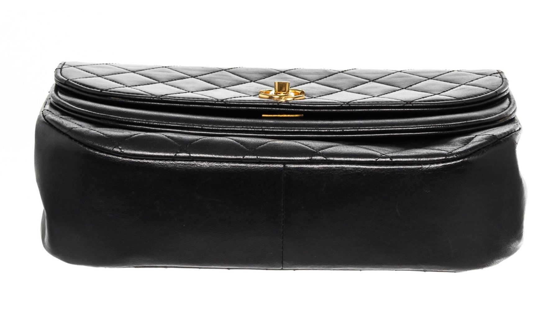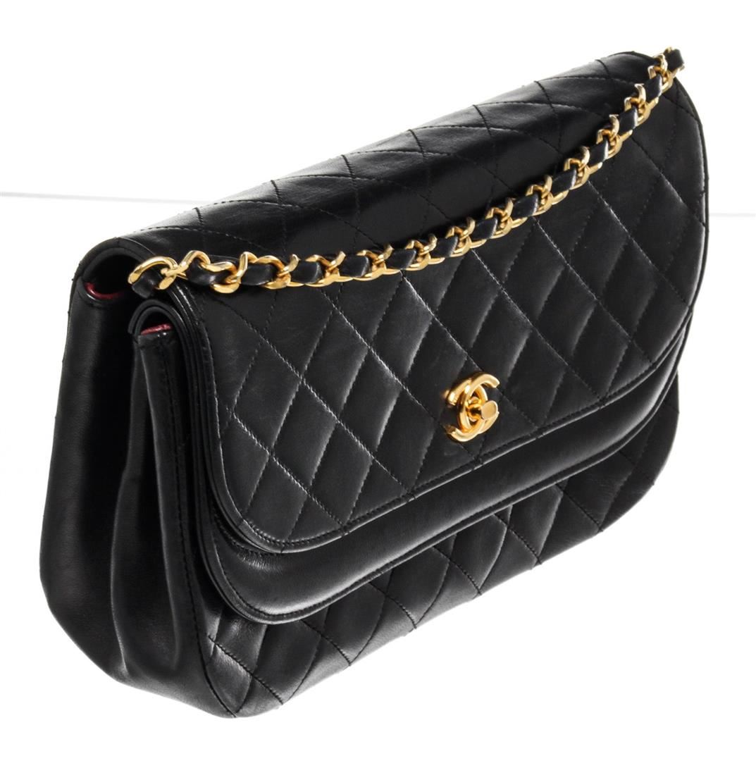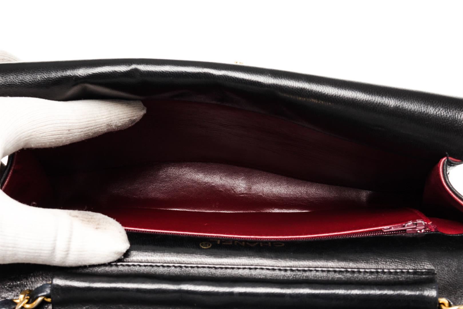 Chanel Round Flap Bag Shoulder Bag. Brand: Chanel, Style: Round Flap Bag, Type: Shoulder Bag, Exterior color: Black, Exterior material: Lambskin, Interior color: Red, Interior material: Fabric, Length: 9, Width: 3, Height: 7. Item is sold AS-IS and all in
