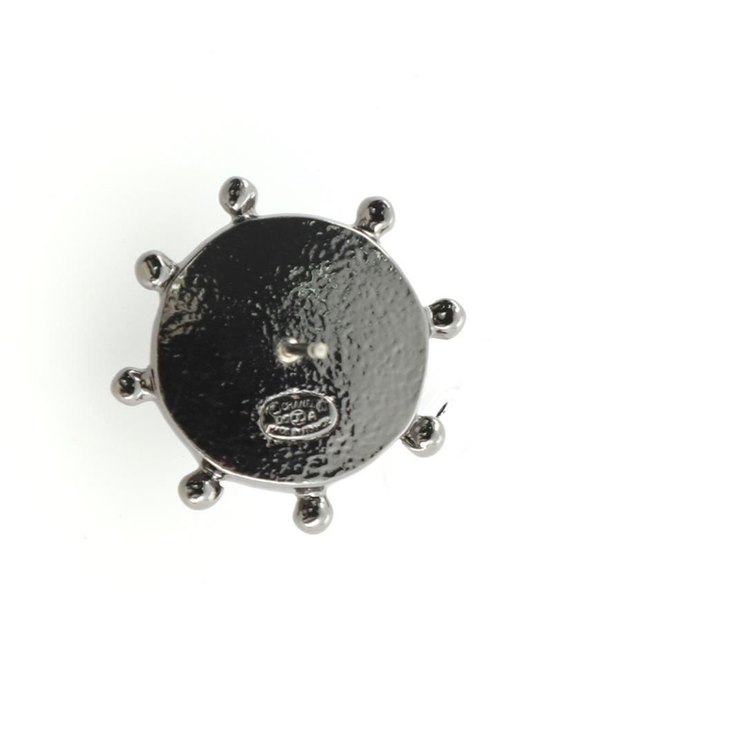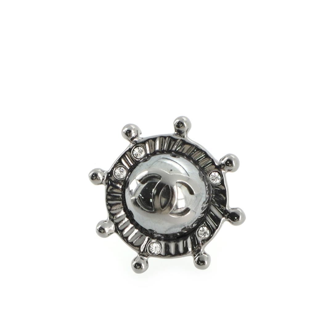 Chanel Ship Wheel Stud Earrings Metal with Rhinestone Silver Metal Rhinestone Condition Details: Minor wear on stems. eight 1.Width 1.Depth 1", Strap Drop -