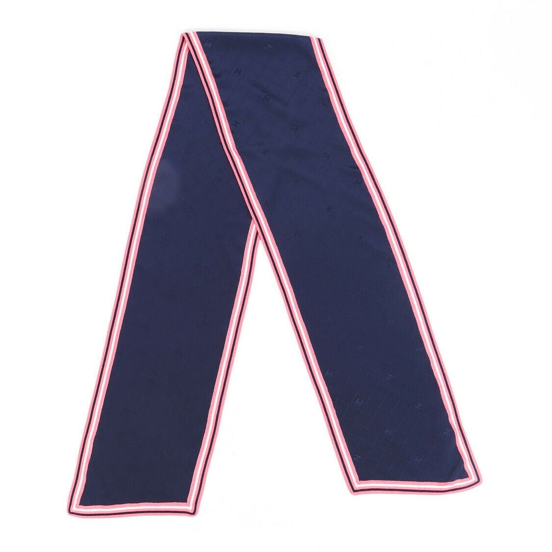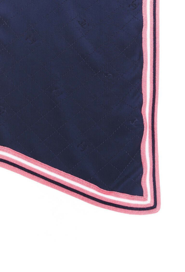 From the 2019 Cruise Collection. Chanel quilted CC silk scarf features striped wool knit trim.