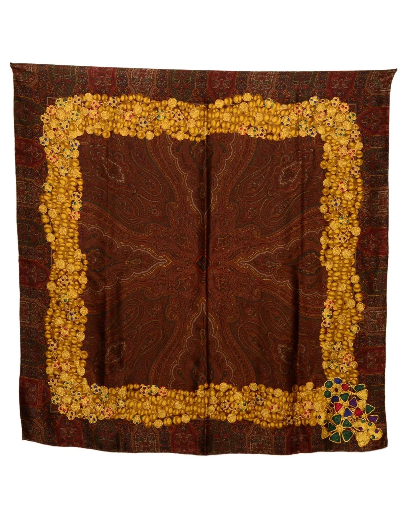Chanel Brown/Red Paisley Jewel Print 90cm Silk Scarf