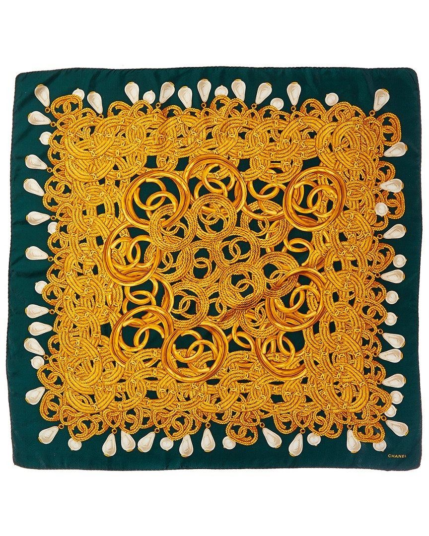 Style: CHANEL DARK GREEN & GOLD SILK SCARF