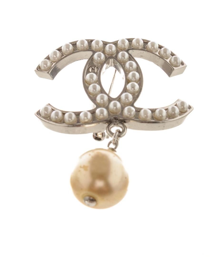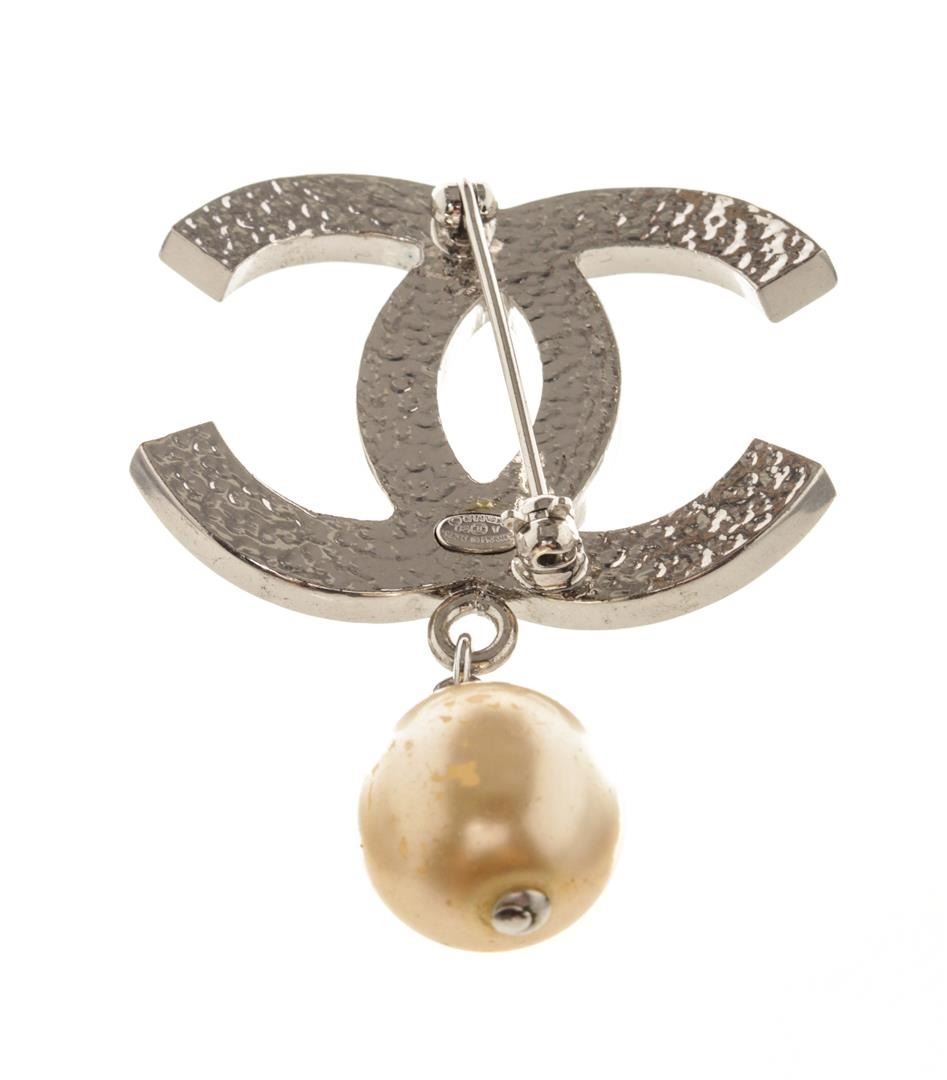 One Chanel Silver CC Pearl Drop. Item is sold AS-IS. All available information is listed in the description and shown in the photo. Chanel Silver CC Pearl Drop. Features silver hardware with a pearl drop.