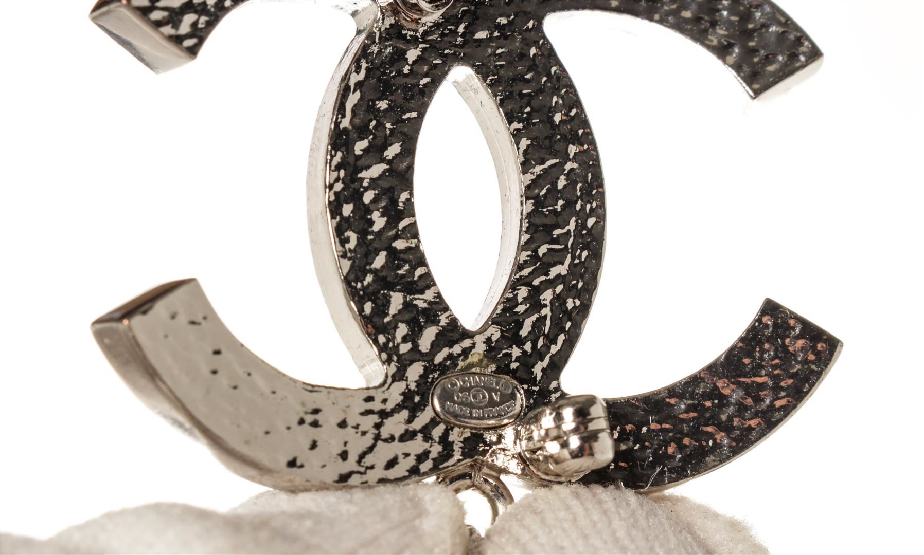 One Chanel Silver CC Pearl Drop. Item is sold AS-IS. All available information is listed in the description and shown in the photo. Chanel Silver CC Pearl Drop. Features silver hardware with a pearl drop.