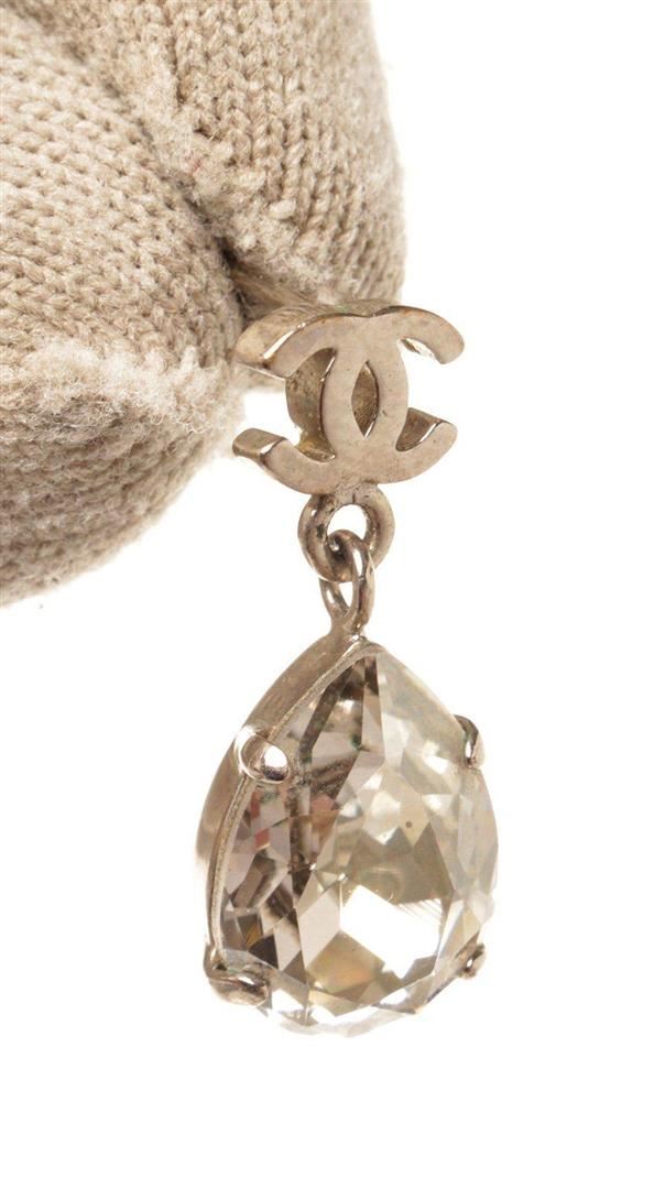 Chanel Silver CC Rhinestone Earrings with silver-tone hardware.