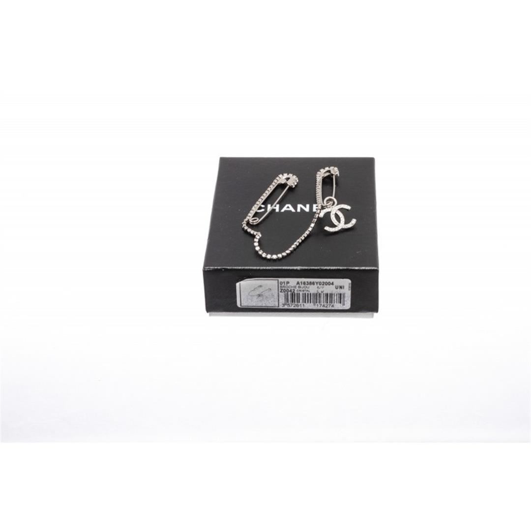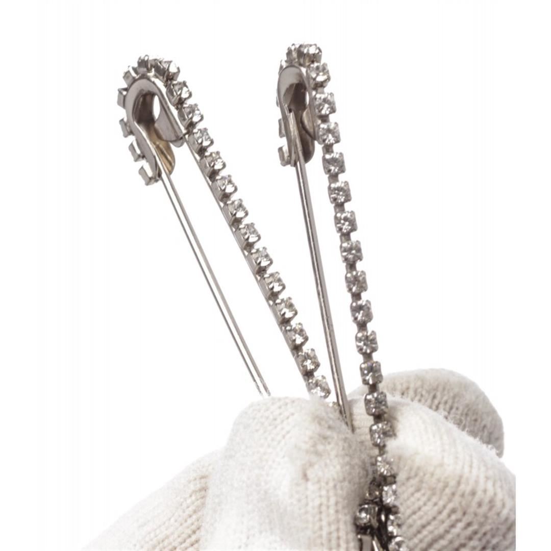 CC silver rhinestone embellished dual safety pin collar brooch. From the 2001 Spring collection. Item is pre-owned.