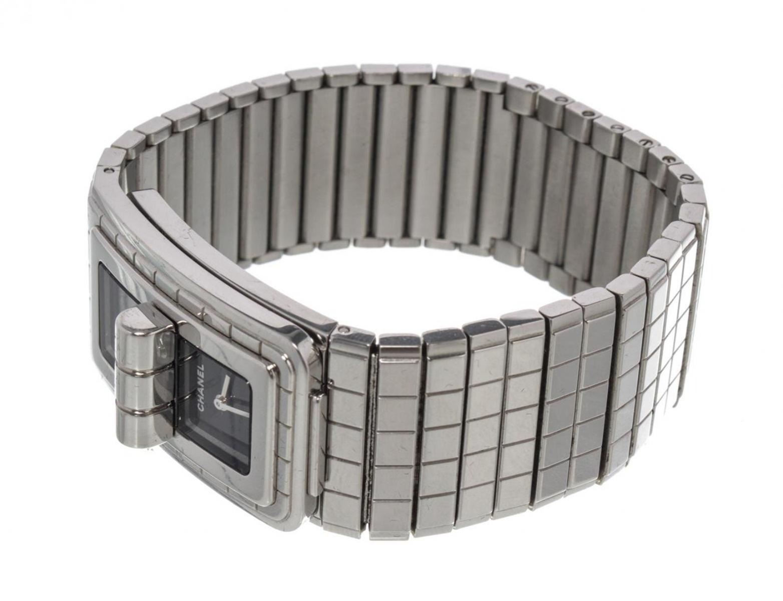 Chanel Silver Code Coco Quarte Watch with silver-tone hardware.