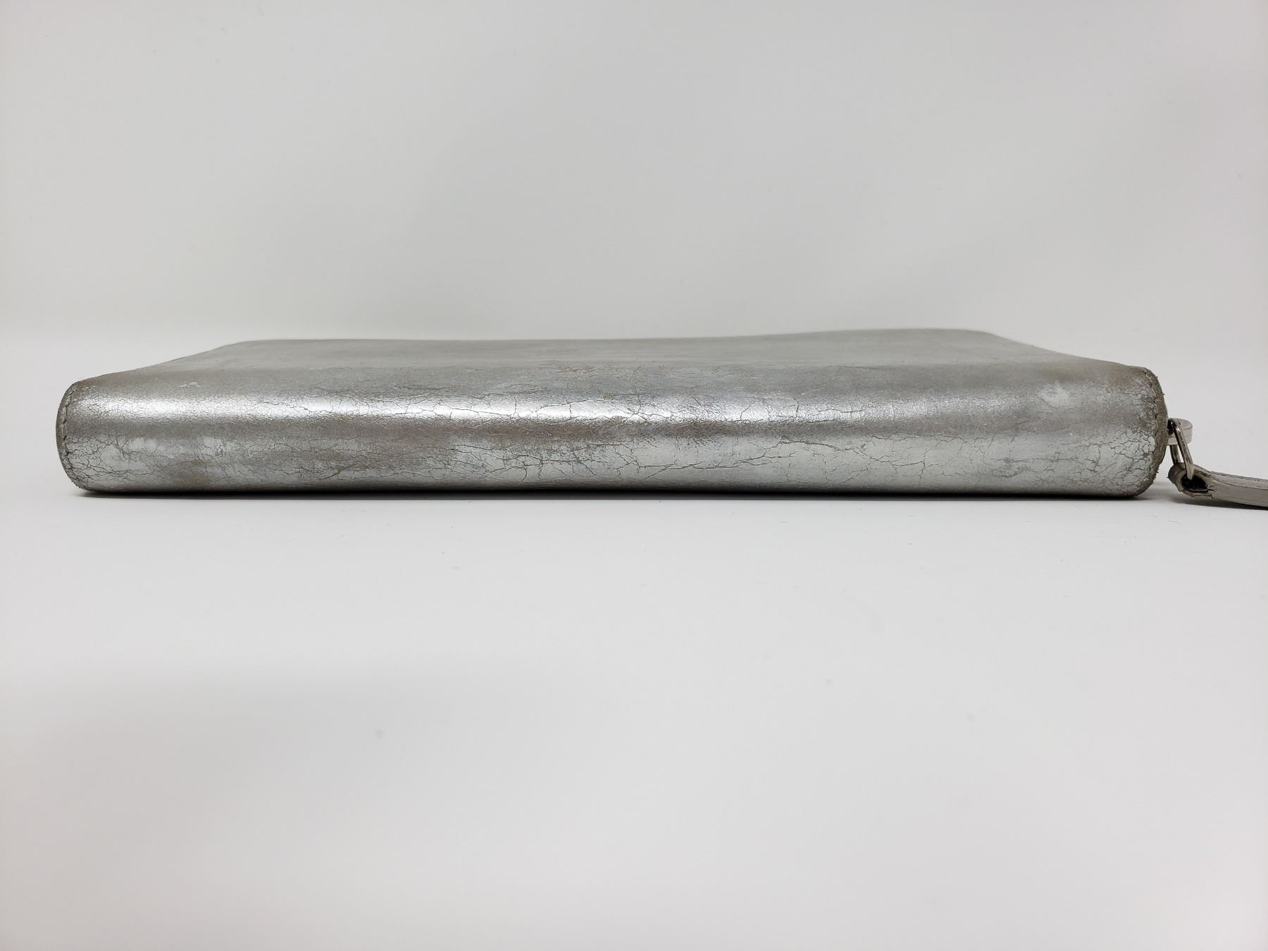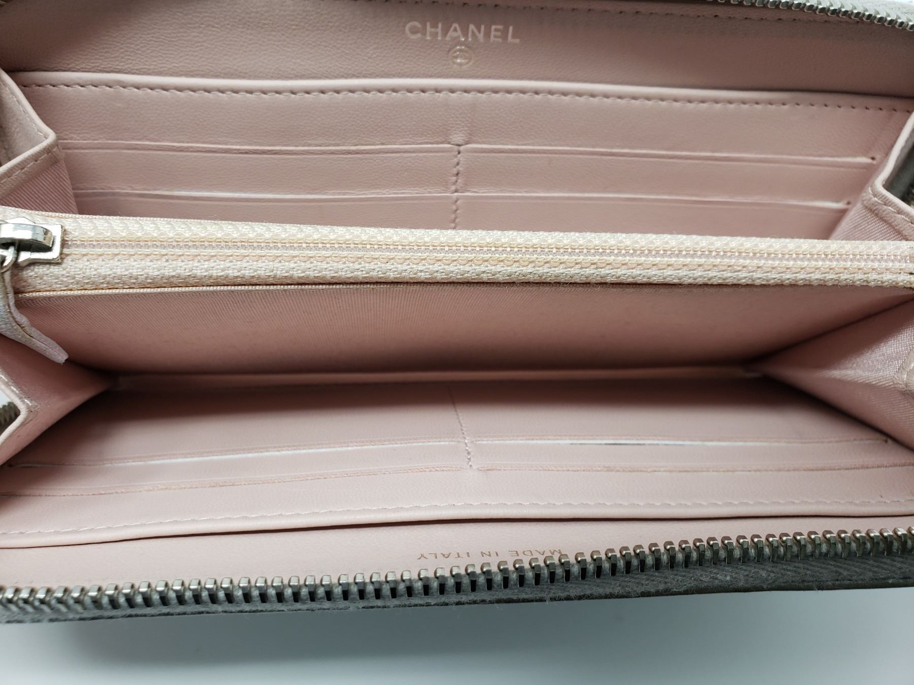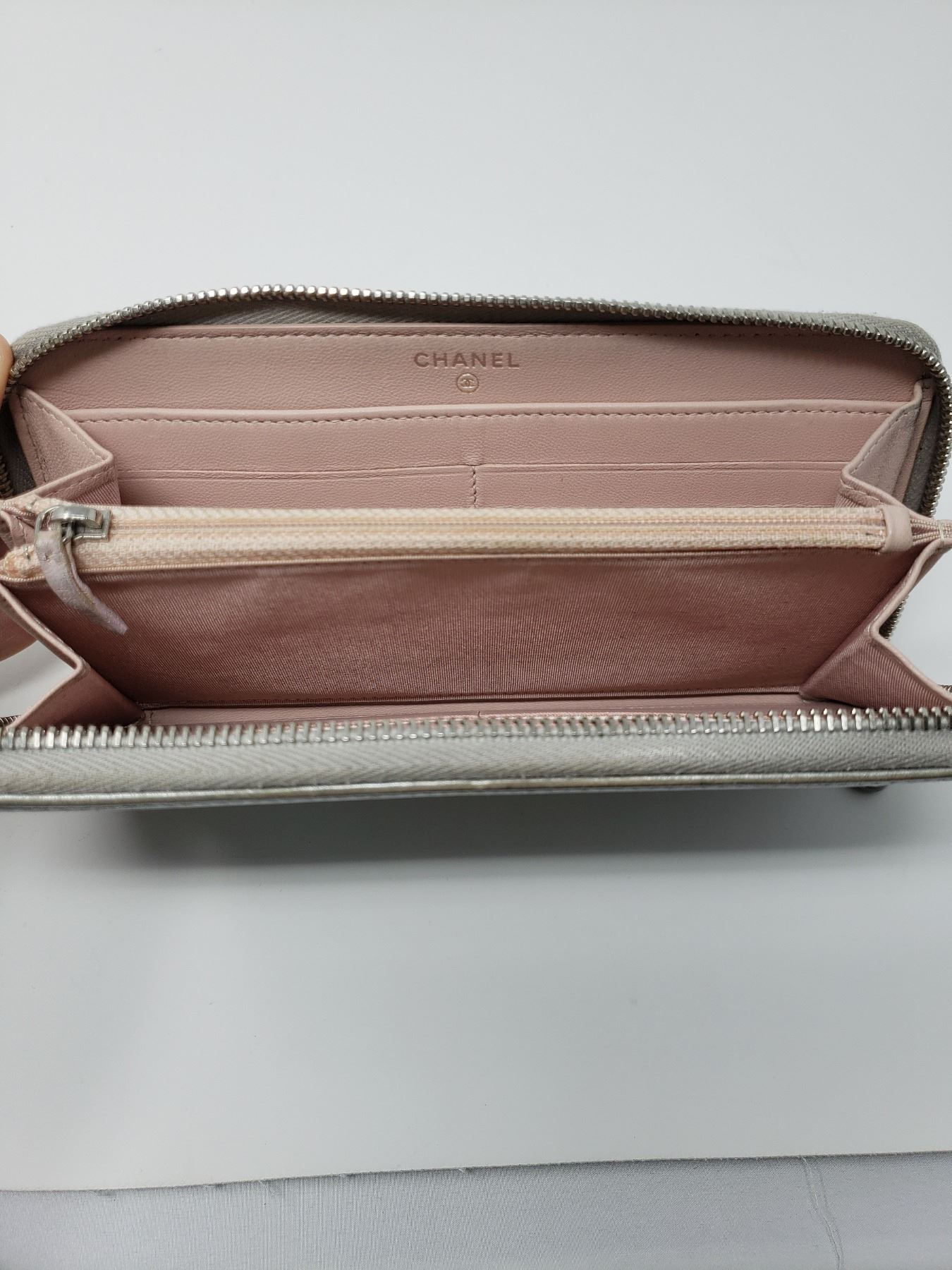 Style: Chanel round fastener long wallet Metallic Silver Leather