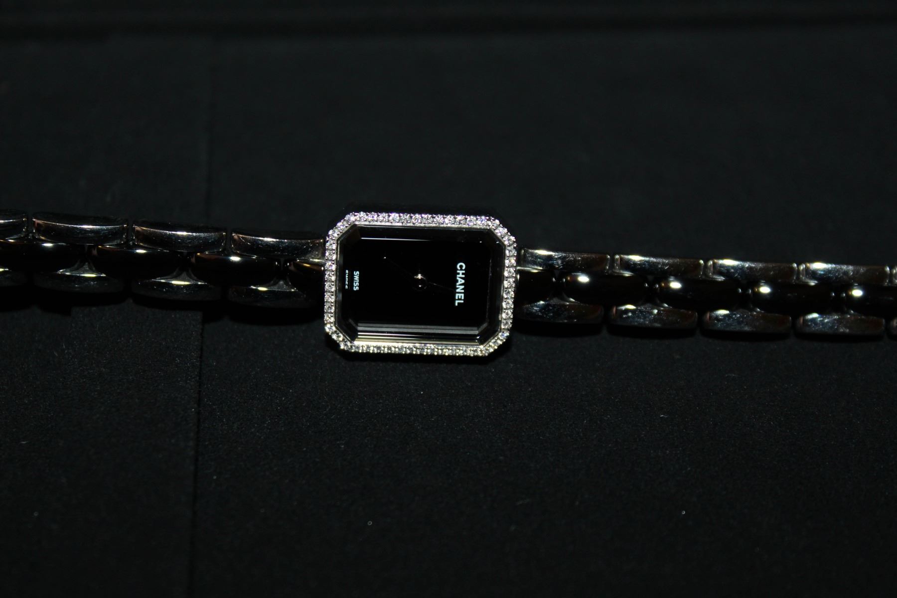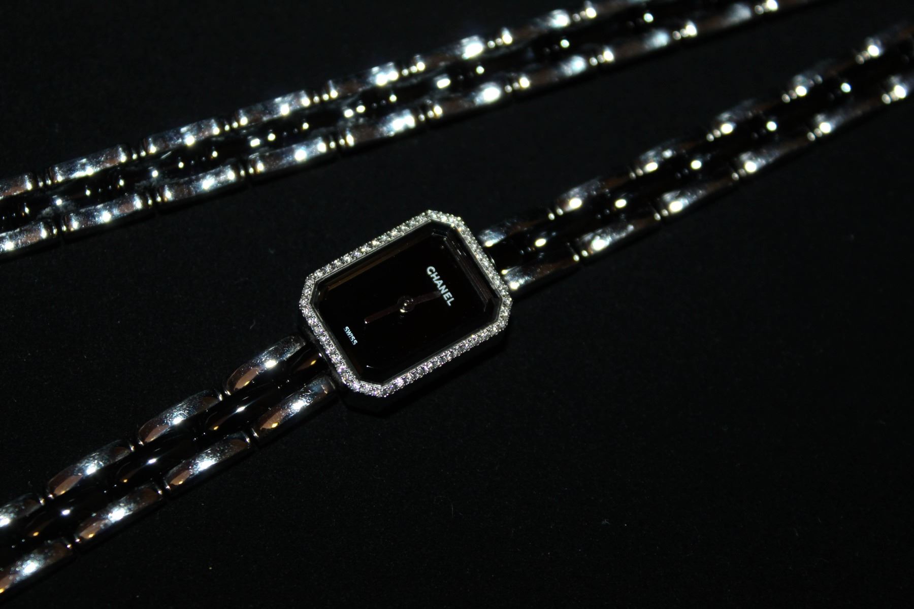 Authentic Chanel Triple Row Steel & Black Ceramic With Diamonds Premiere Mini Watch