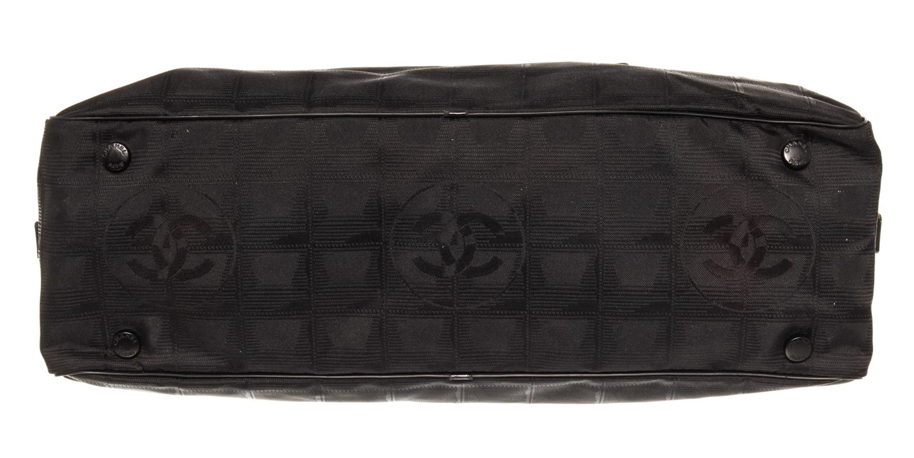 Chanel Travel Line Medium. All available information is listed in the description and shown in the photos. Chanel Travel Line Medium Black Nylon. Features silver hardware, black canvas interior, and a silver zipper closure.