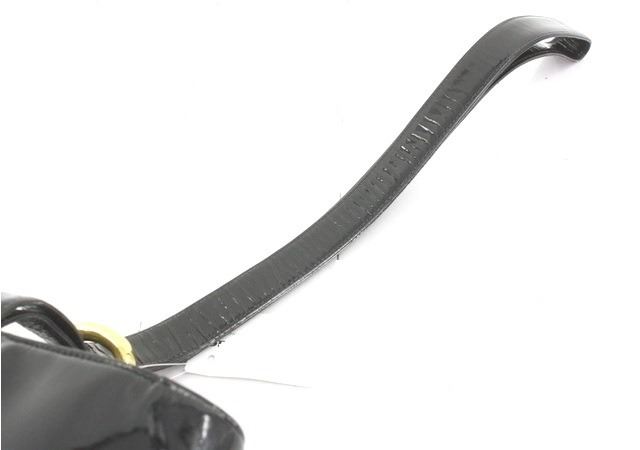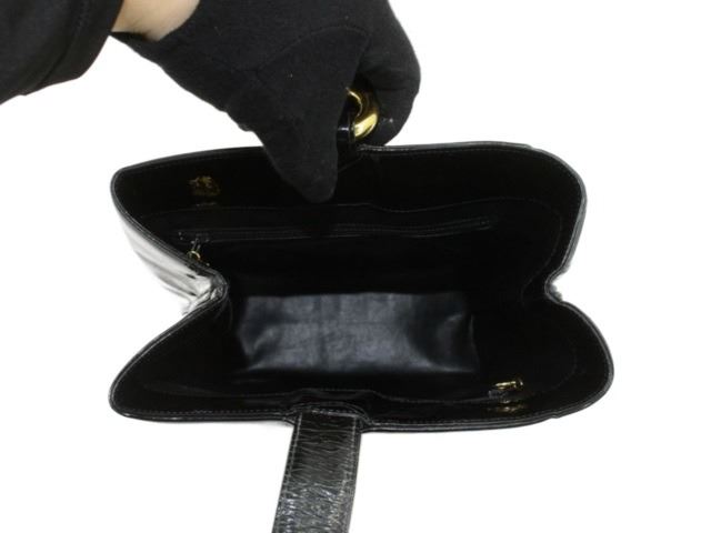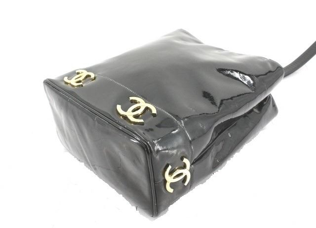 Chanel Triple CC Tote Black Patent Leather. Brand: Chanel, Style: Triple CC, Type: Tote, Exterior Color: Black, Exterior Material: Patent Leather, Exterior Pockets: None, Interior Color: Black, Interior Material: Leather, Interior Pockets: Two Zip, Closure: Buckle, Handle/Strap Type: Shoulder Strap, Length: 9.5, Width: 5.5, Height: 11. Condition: Strap is creased. Item is sold AS-IS and all information pertaining to this lot is available in the photos or this description.