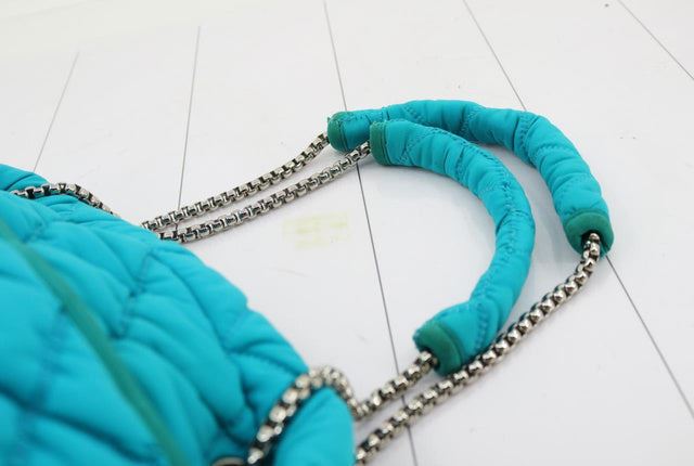Chanel Turquoise Blue Quilted Bubble Jersey Snake Effect Chain Shoulder Bag