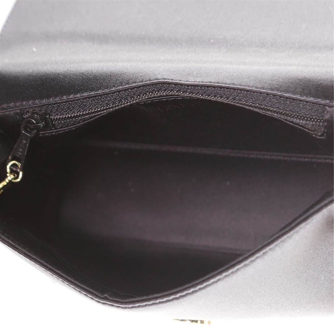One Chanel VIntage Curved Flap Crossbody Beaded Satin Mini Black. Item is sold AS-IS. All available information is listed in the description and shown in the photo. Chanel VIntage Curved Flap Crossbody Beaded Satin Mini Black Condition Details: Missing bead on flap. Indentations underneath flap, minor wear on base corners and in interior, scratches on hardware. Height 4.5", Width 6.5", Depth 2.5", Strap Drop 21.5