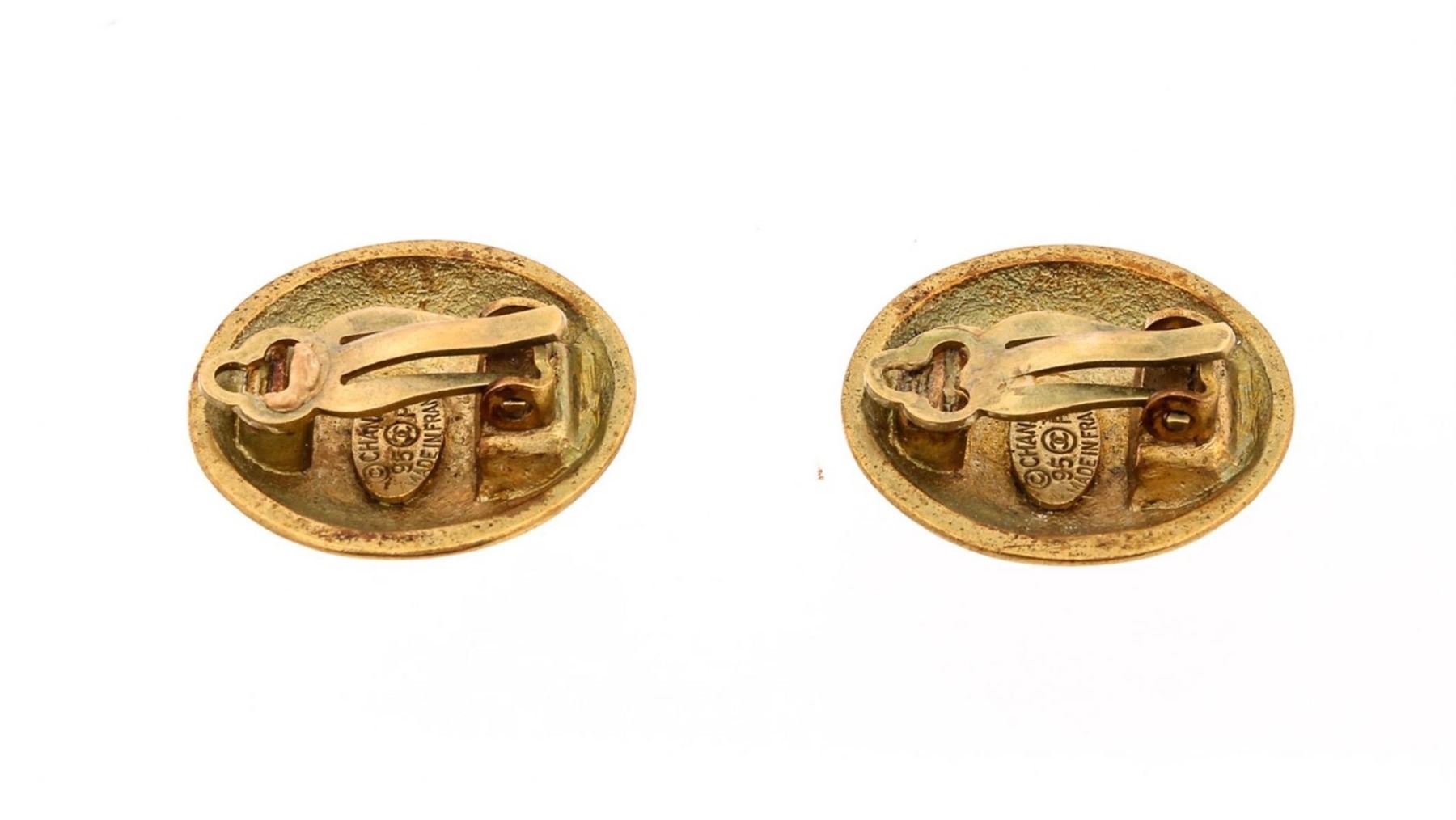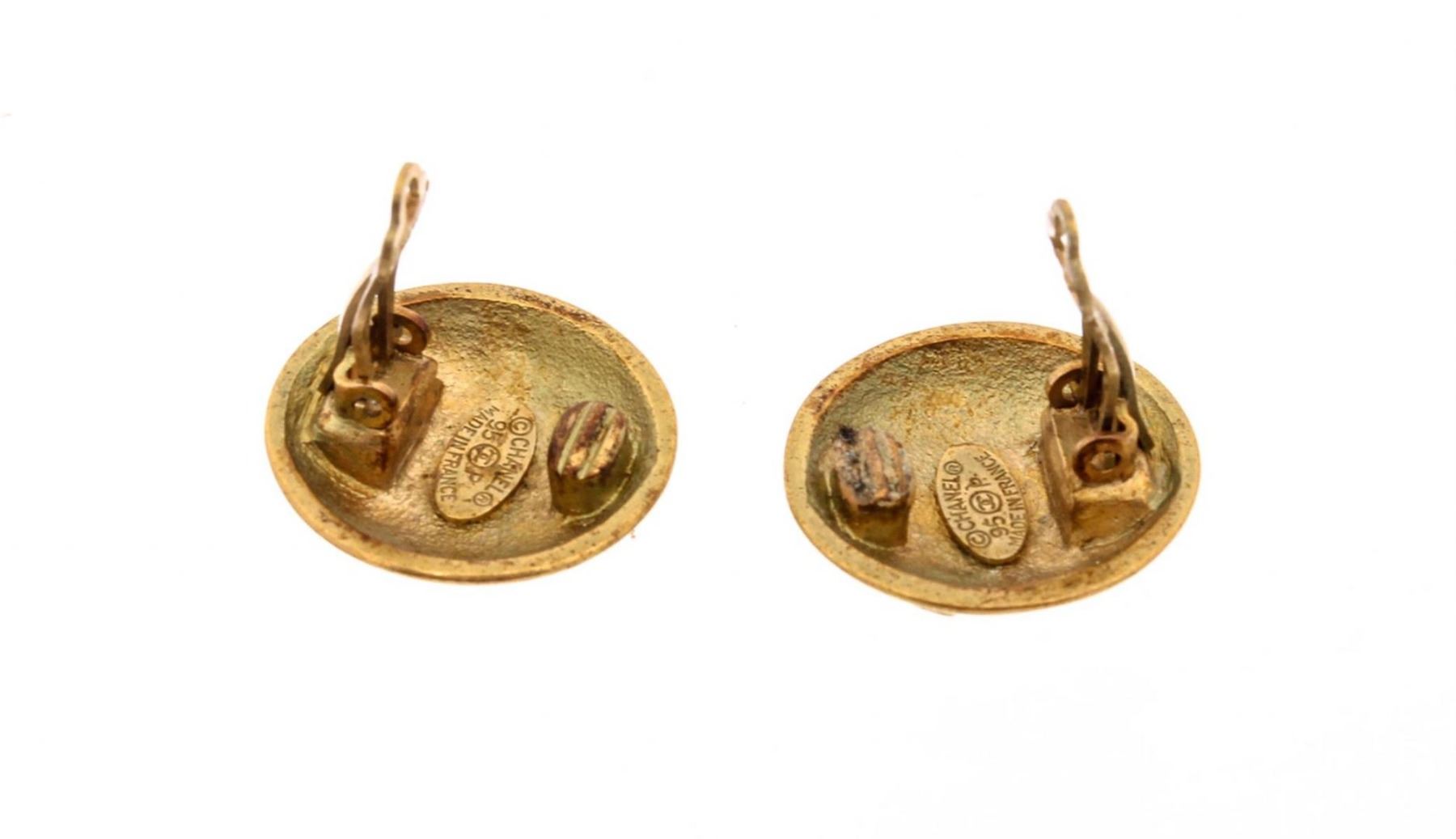 One pair Chanel Vintage Gold CC Rope Logo Clip-On Earrings featuring gold-tone metal plating, signature 'CC' logo, and secure clip-on closures. From the 1995 Spring Collection.