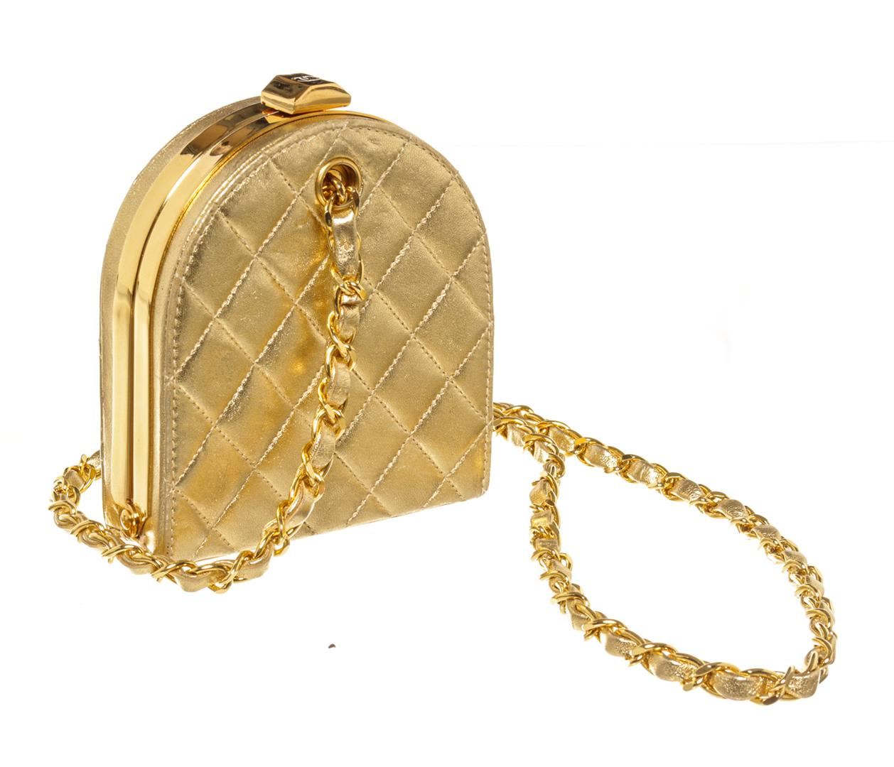 Chanel Vintage Gold Metallic Quilted Leather Frame Mini Clutch Bag