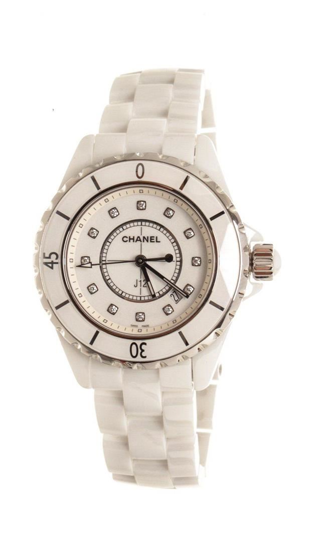Chanel White J12 Diamo Watch with silver-tone hardware.