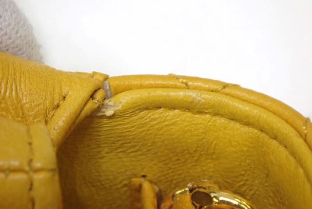 One Chanel Yellow Quilted Leather Flap Micro Flap Bag. Item is sold AS-IS. All available information is listed in the description and shown in the photo. Yellow quilted leather Chanel Micro Flap bag with gold-tone hardware, an interlocking CC logo at front flap, woven leather and chain-link strap, magnetic snap closure and yellow leather lining. 3 cm x 6 cm x 7 cm