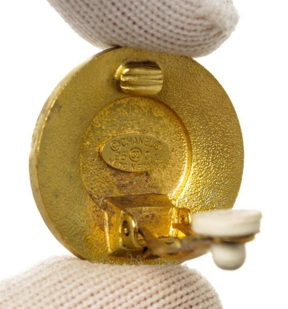 One Chanel Yellow Round CC Earring. Item is sold AS-IS. All available information is listed in the description and shown in the photo. Chanel Yellow Round CC Earring with gold-tone hardware.