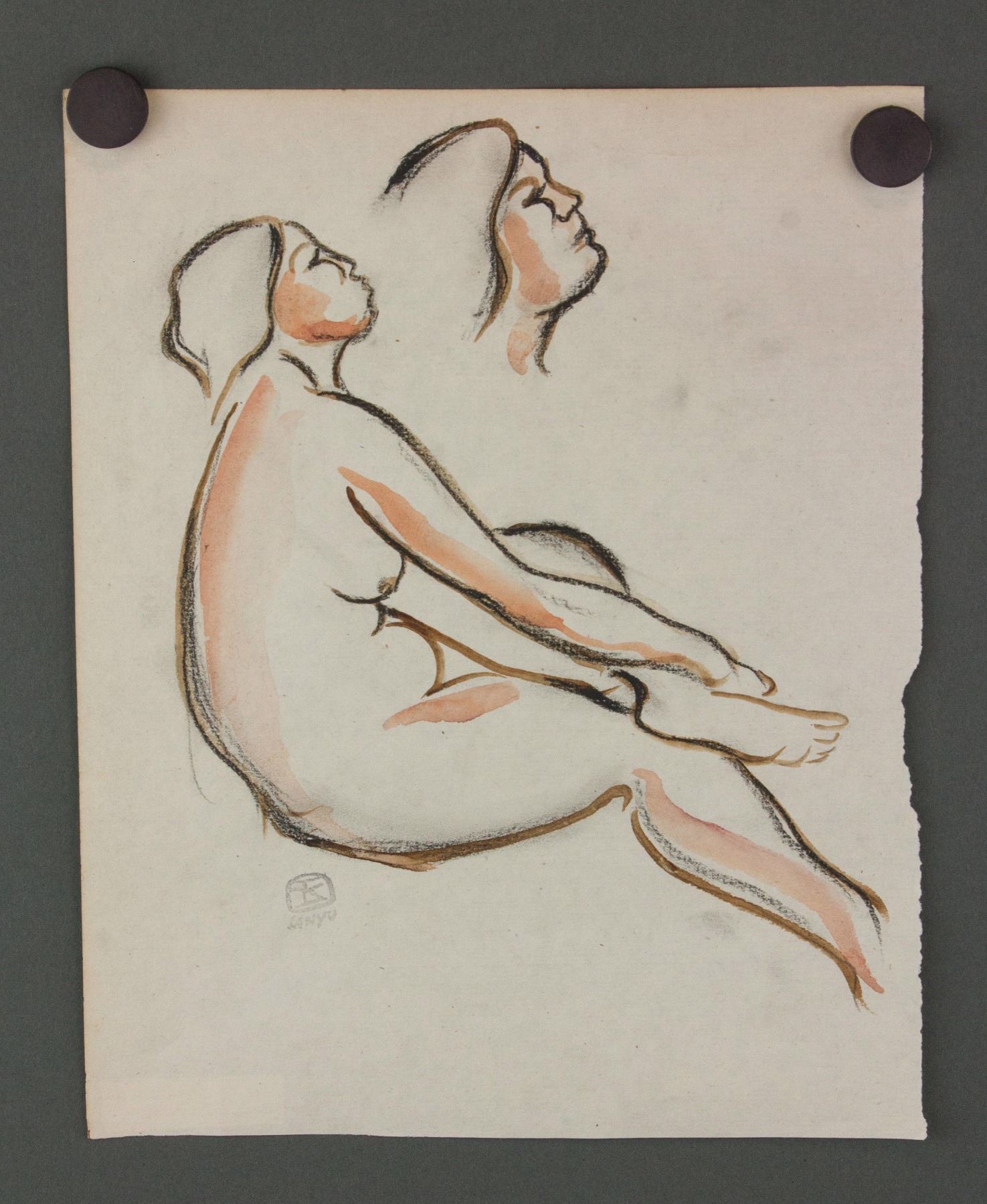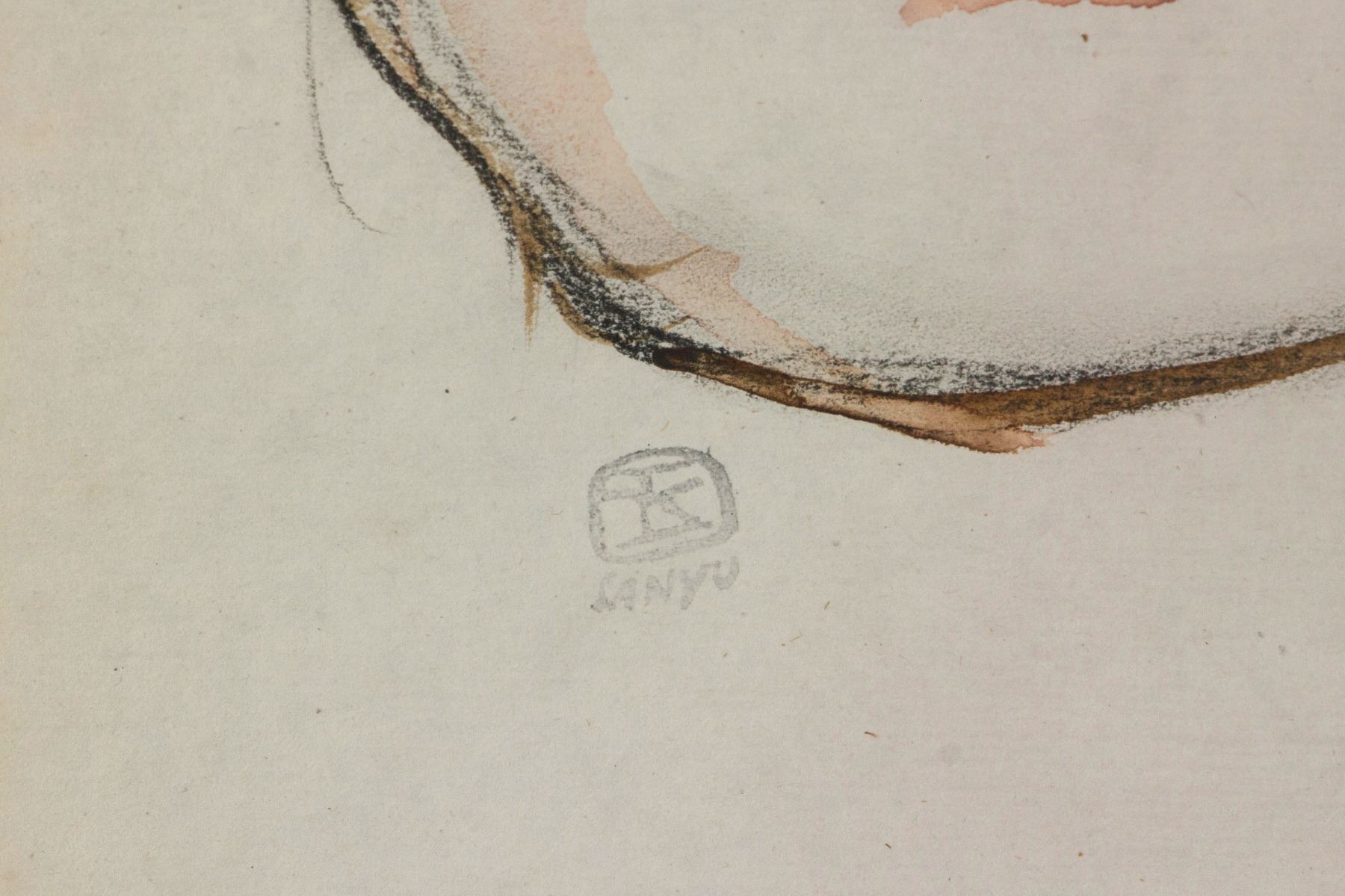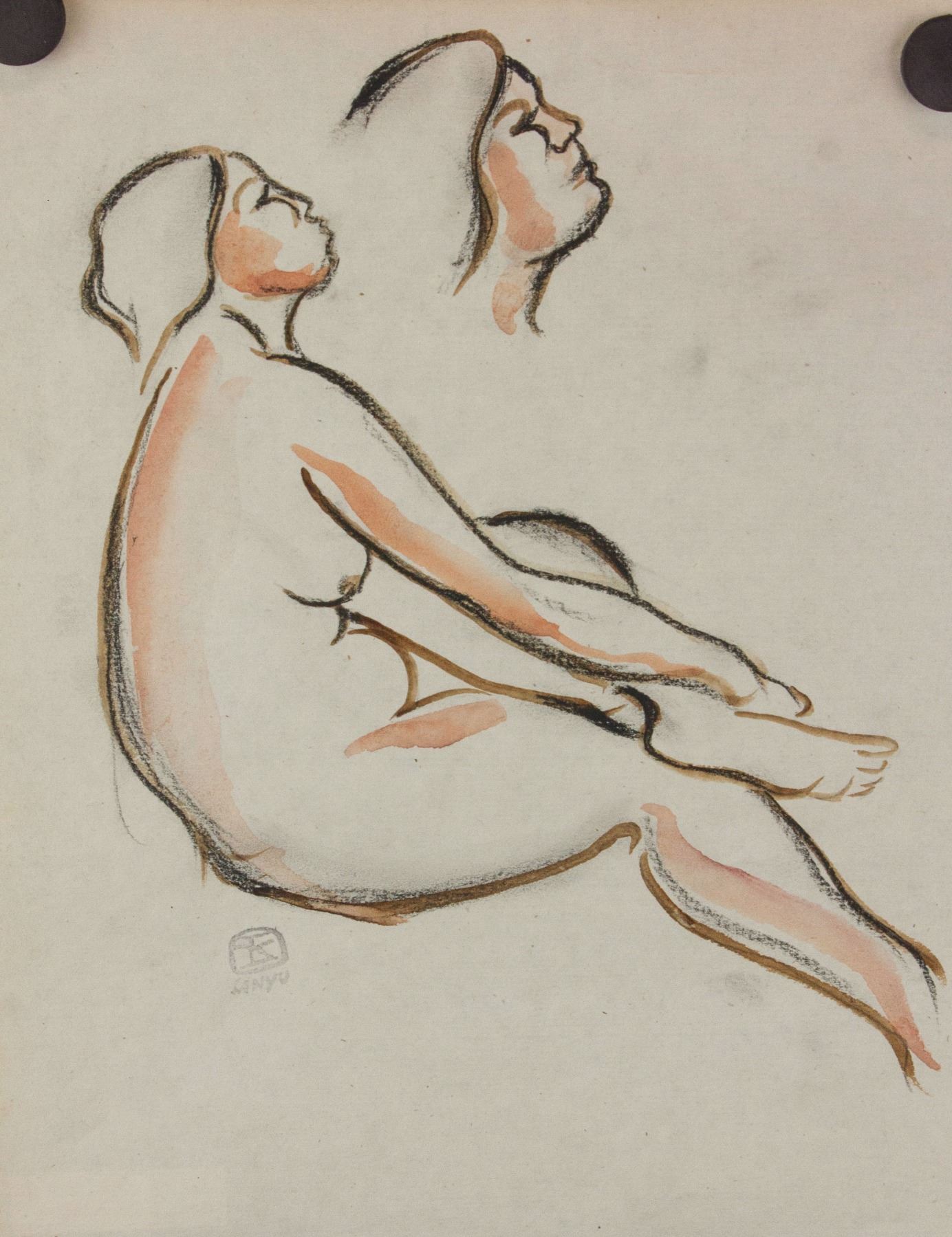 Sketch of a naked woman; charcoal and watercolour on paper; signed Chang Yu (aka Sanyu, 1901-1966), French Chinese painter; inscribed with 1 artist seal; 10 inches x 8 inches