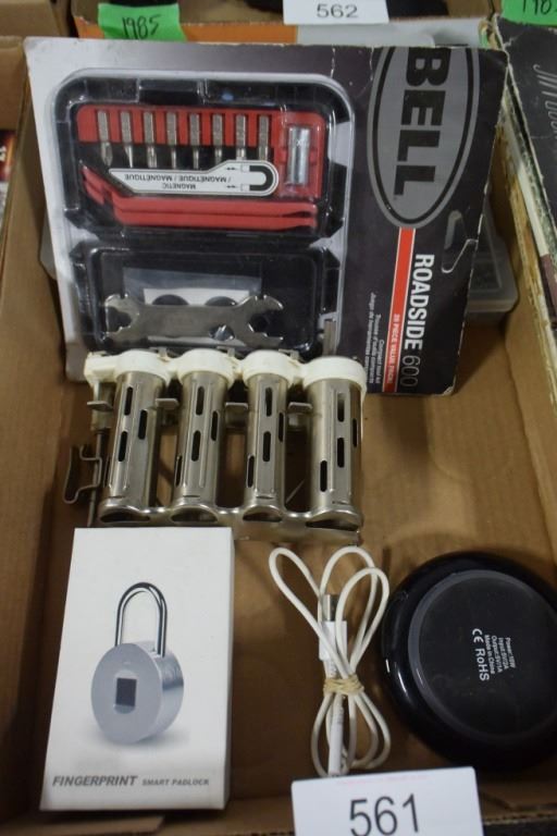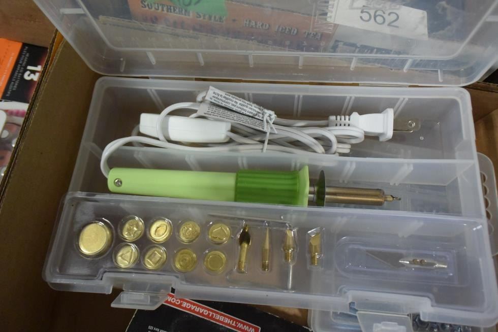 wireless charger, roadside 600 toolkit, soldering pencil/wood burner, machine screws, nuts