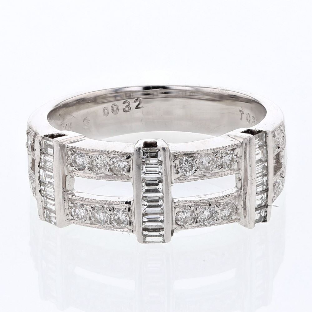 Channel-set Baguette & Round Diamond Band in 14K White Gold | 166287 6.5 Grams, featuring 0.32 Baguette ct 20 0.35 ct 18 ct 14 ct