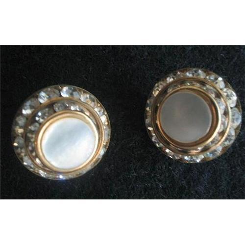 Channel Set Double Layered Rhinestone Button Earrings, MOP Lucite Inlay - Clip On </em></td>
