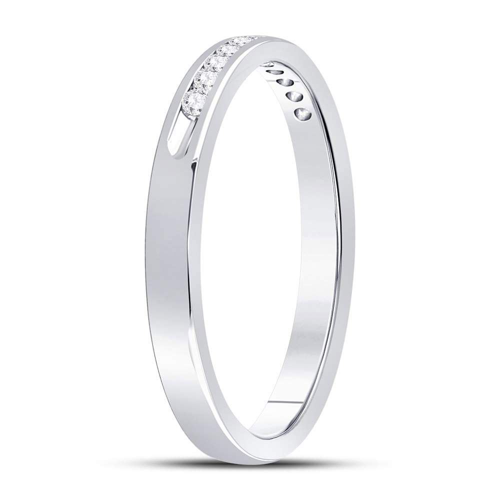 14kt White Gold Womens Round Channel-set Diamond Single Row Wedding Band 1/10 Cttw
