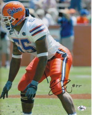 As a freshman in 2003, Channing Crowder played in 11 games with nine starts. Those nine starts were the most by a freshman linebacker in school history. He would end up leading the nation in tackles by a freshman during the season. He ranked first among linebackers, first among Florida's true freshmen and tied for ninth on the team with 816 plays despite missing two games. Crowder was named one of ESPN's All-American Linebackers, a First-Team All-SEC Defensive selection, and a Second-Team All-SEC selection by the Associated Press. Channing Crowder has hand autographed this Florida Gators 8x10 Photo. Famous Ink Hologram and Certificate of Authenticity from Athlon Sports.