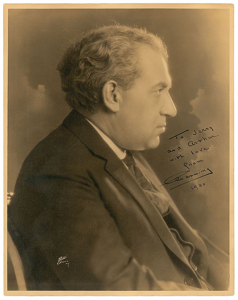 American playwright and critic (1880–1946). Vintage matte-finish 11 x 14 studio portrait of Pollock in profile, signed and inscribed in fountain pen, “To Jerry and Arthur, with love, from Channing, 1930.” In fine condition.