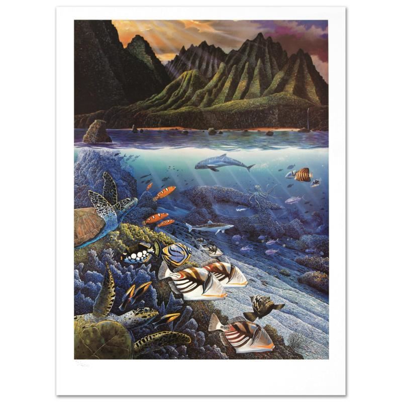 "Chant to Nature" is a limited edition mixed media on paper by Robert Lyn Nelson, numbered and hand signed by the artist! This artwork consists of three separate pieces that are meant to be displayed together as a triptych. Includes Certificate of Authenticity! Measures Approx: 54" x 27.5" (all three pieces combined), 18" x 27.5" (each image).