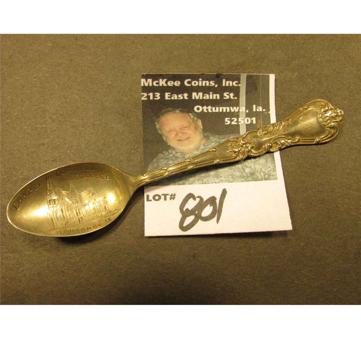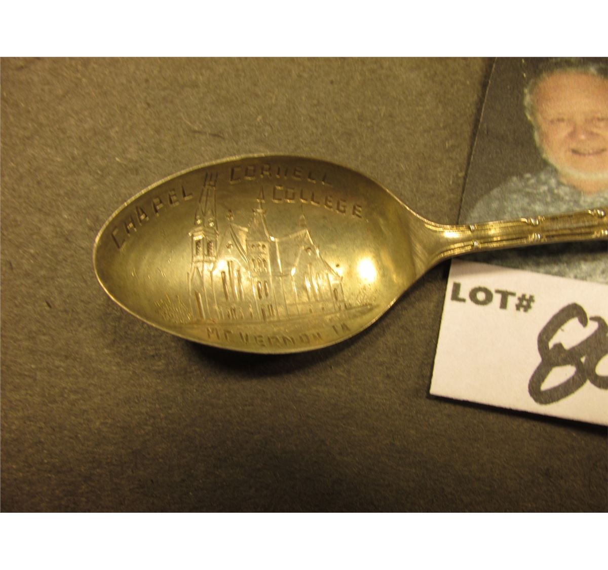 Chapel Cornell/College/Mt. Vernon, Ia Souvenir Spoon stamped on the reverse "Sterling".