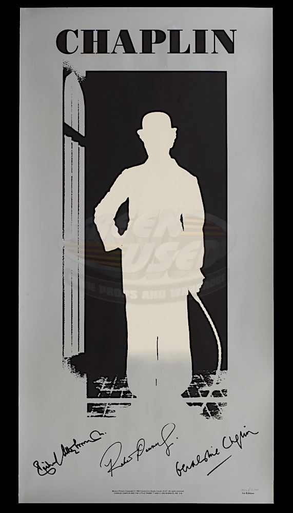 (Carolco Pictures, 1992) A limited 1st edition poster numbered 9,663 of 10,000 and autographed by Robert Downey Jr., Geraldine Chaplin and the film's director Richard Attenborough. Poster is rolled and measures 20" x 39".
