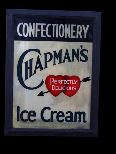 "Chapman's Ice Cream" reverse glass sign w/ hearts 32 x 24 " vertical sign