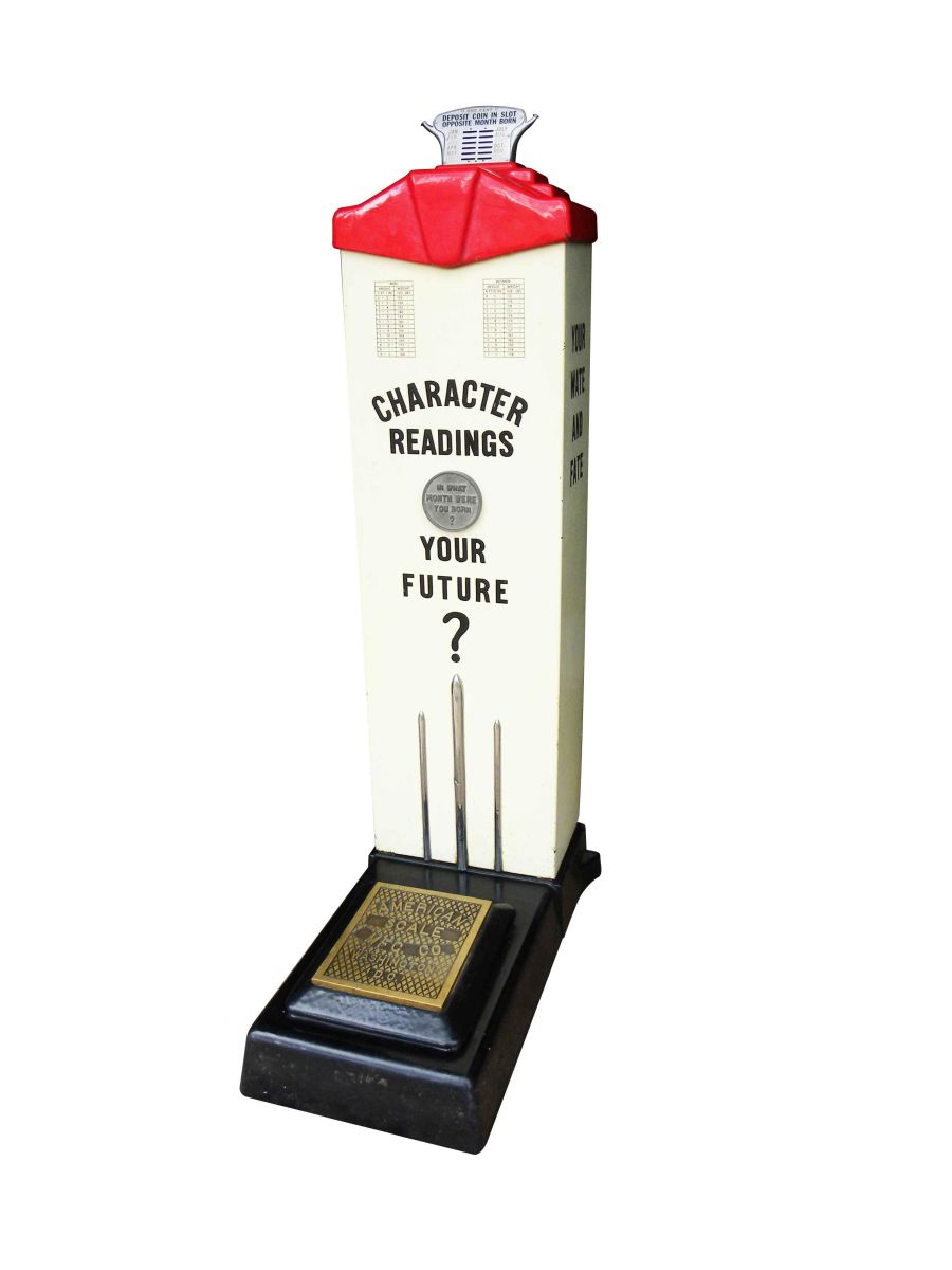 Character Porcelain Scale, "Readings for your future". Coin operated, one cent. The American Scale Mfg Co. Washington DC. Excellent condition. 16 X 52 X 26 1/2 inches.